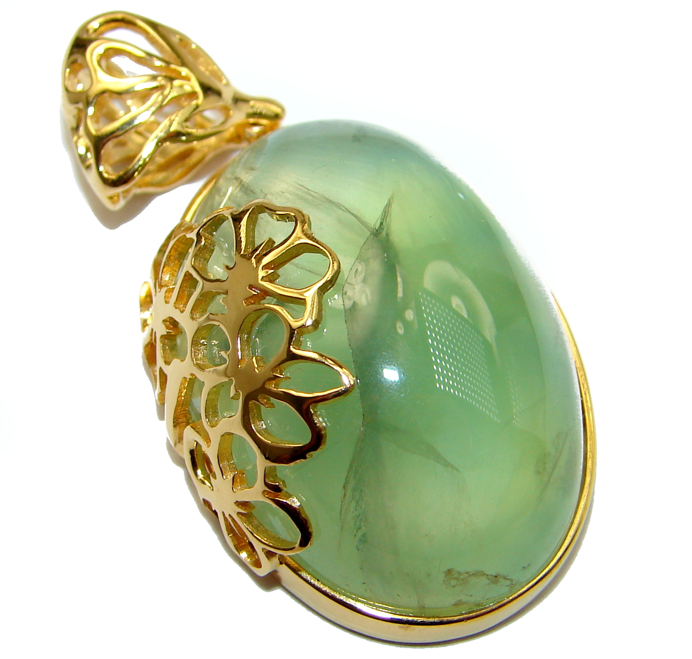 Authentic Moss Prehnite 18K Gold over .925 Sterling Silver handmade pendant