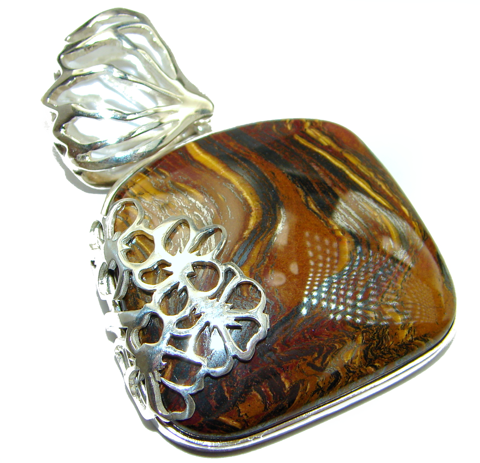 Incredible quality Silky Golden Tigers Eye .925 Sterling Silver handmade Pendant