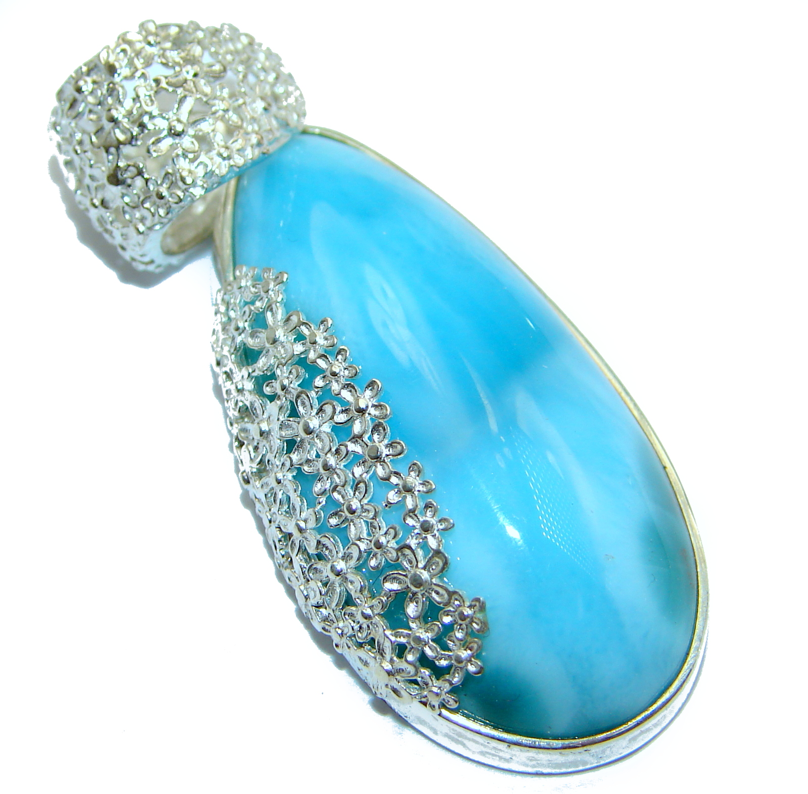 Romantic Design 102 ct perfectly Blue Larimar .925 Sterling Silver handmade pendant