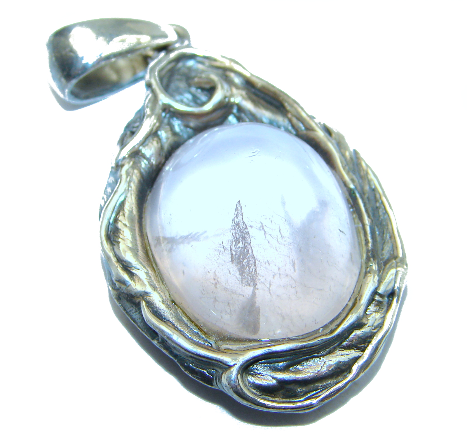 Huge Pink Power 96ct Rose Quartz .925 Sterling Silver handcrafted Pendant