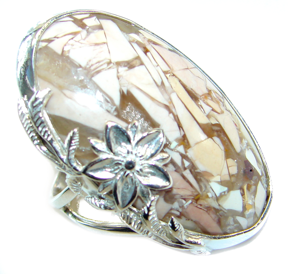 Flawless Australian Bracciated Mookaite Sterling Silver Ring size 7 adjustable