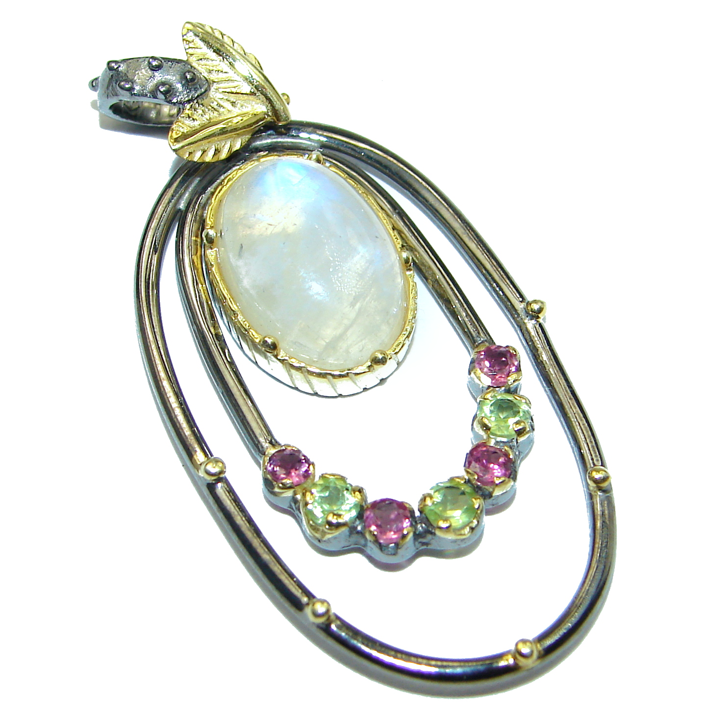 Fire Moonstone Tourmaline 14K Gold over .925 Sterling Silver handmade Pendant