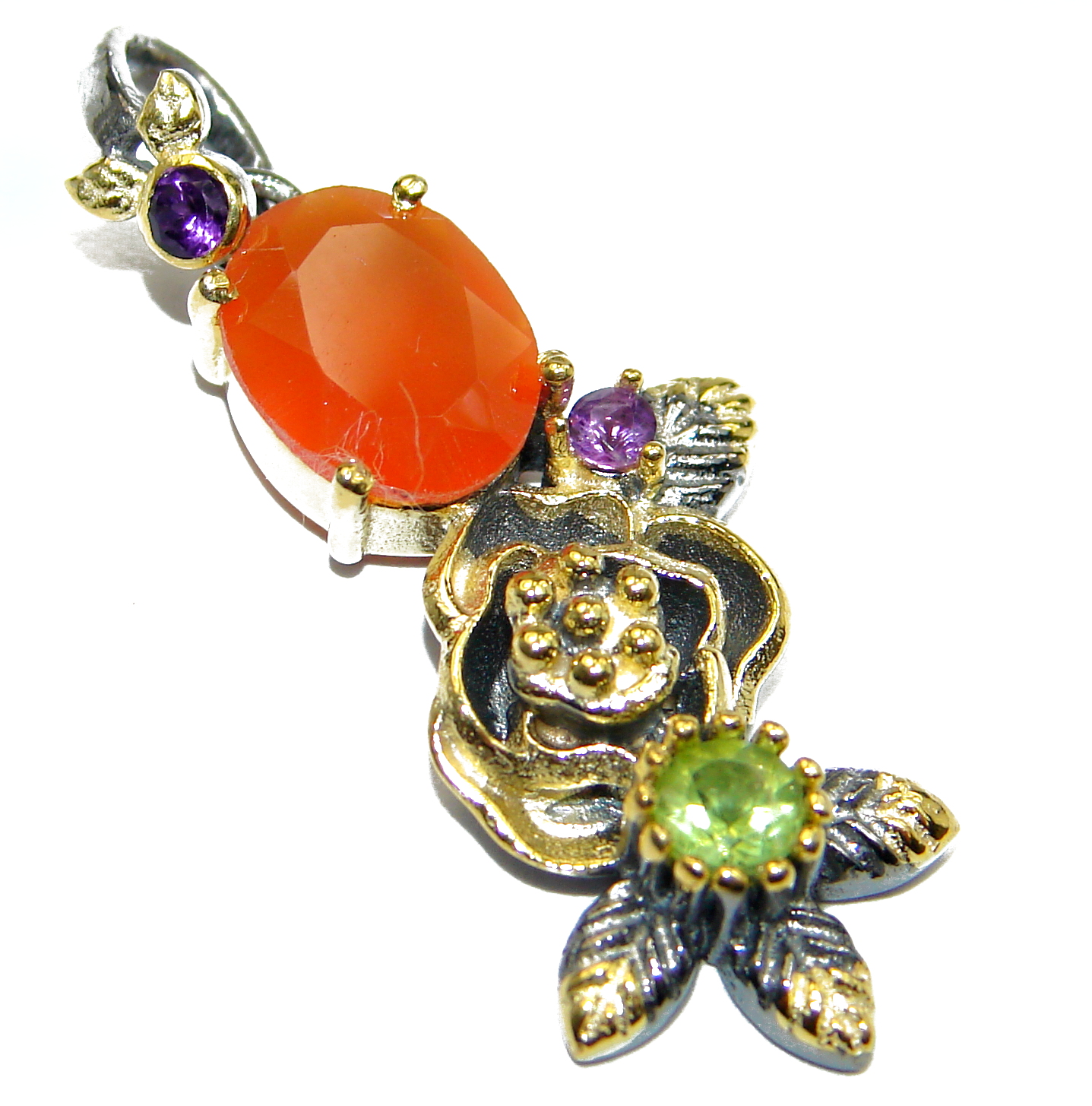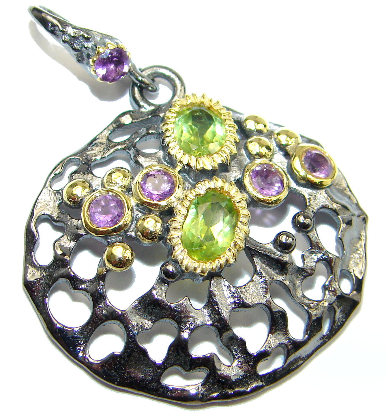 Pure Joy Amethyst Peridot 14K Gold over .925 Sterling Silver handcrafted Pendant