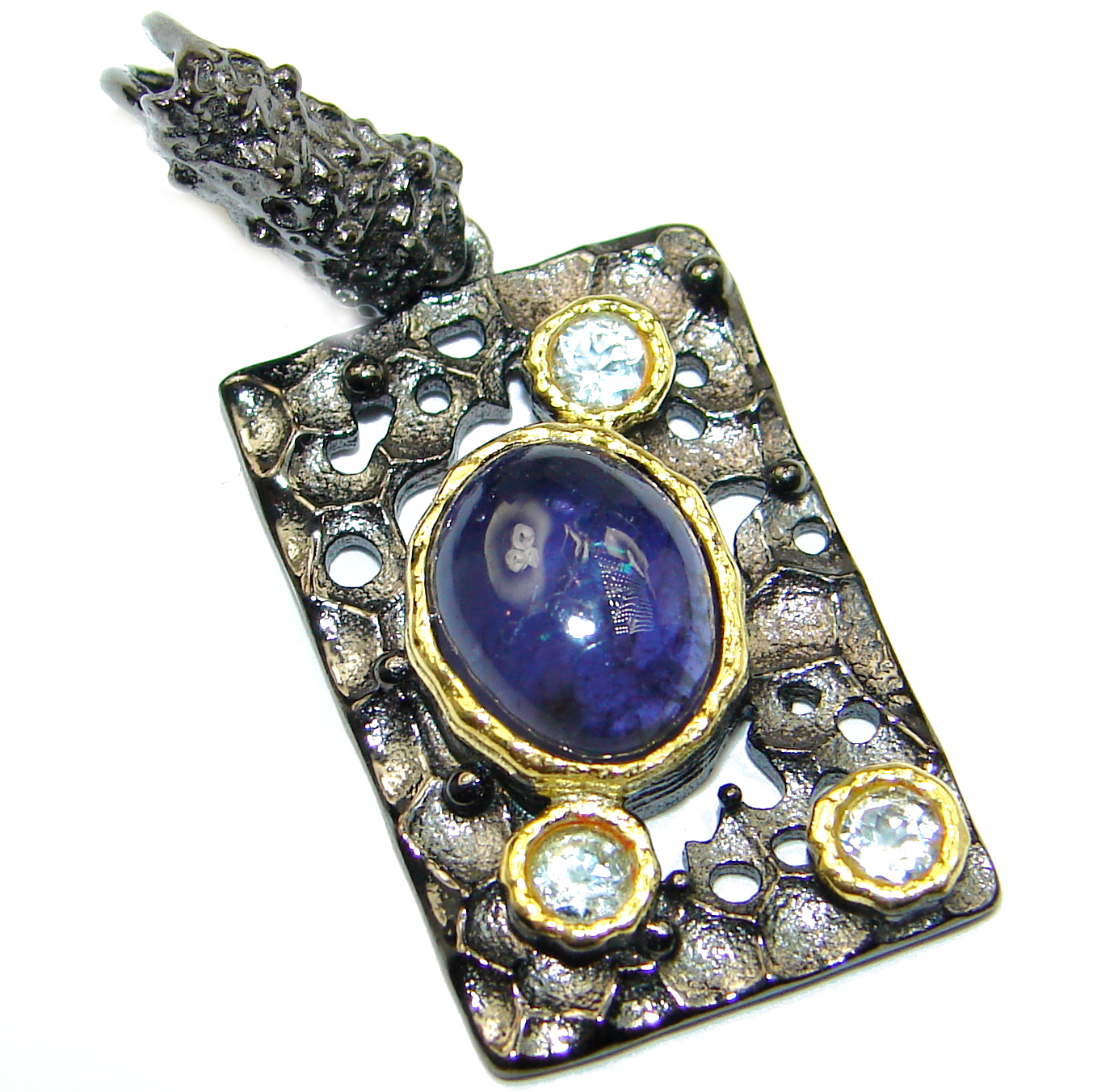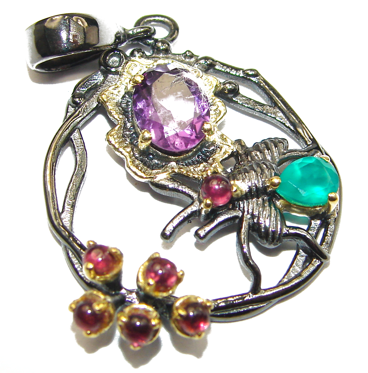 Precious multigem Rhodium over .925 Sterling Silver handcrafted Pendant