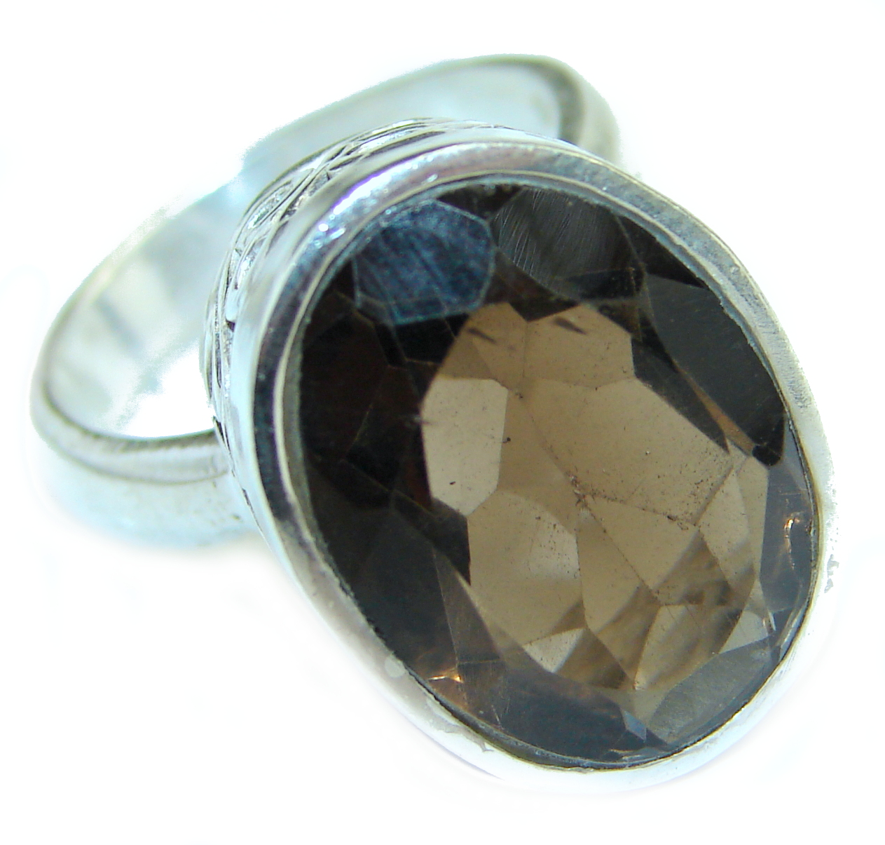 Bold Champagne Smoky Topaz .925 Sterling Silver Ring size 8