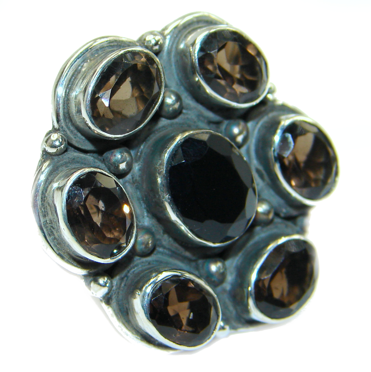 Bold Champagne Smoky Topaz .925 Sterling Silver Ring size 9