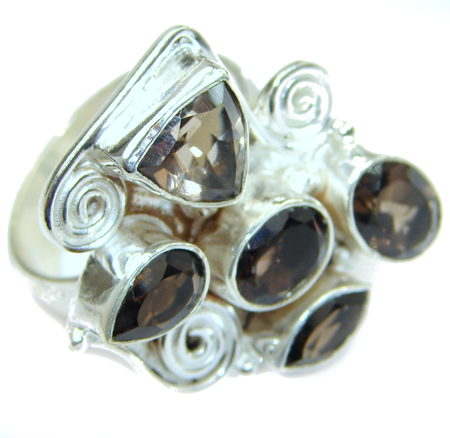 Bold Champagne Smoky Topaz .925 Sterling Silver Ring size 6 3/4