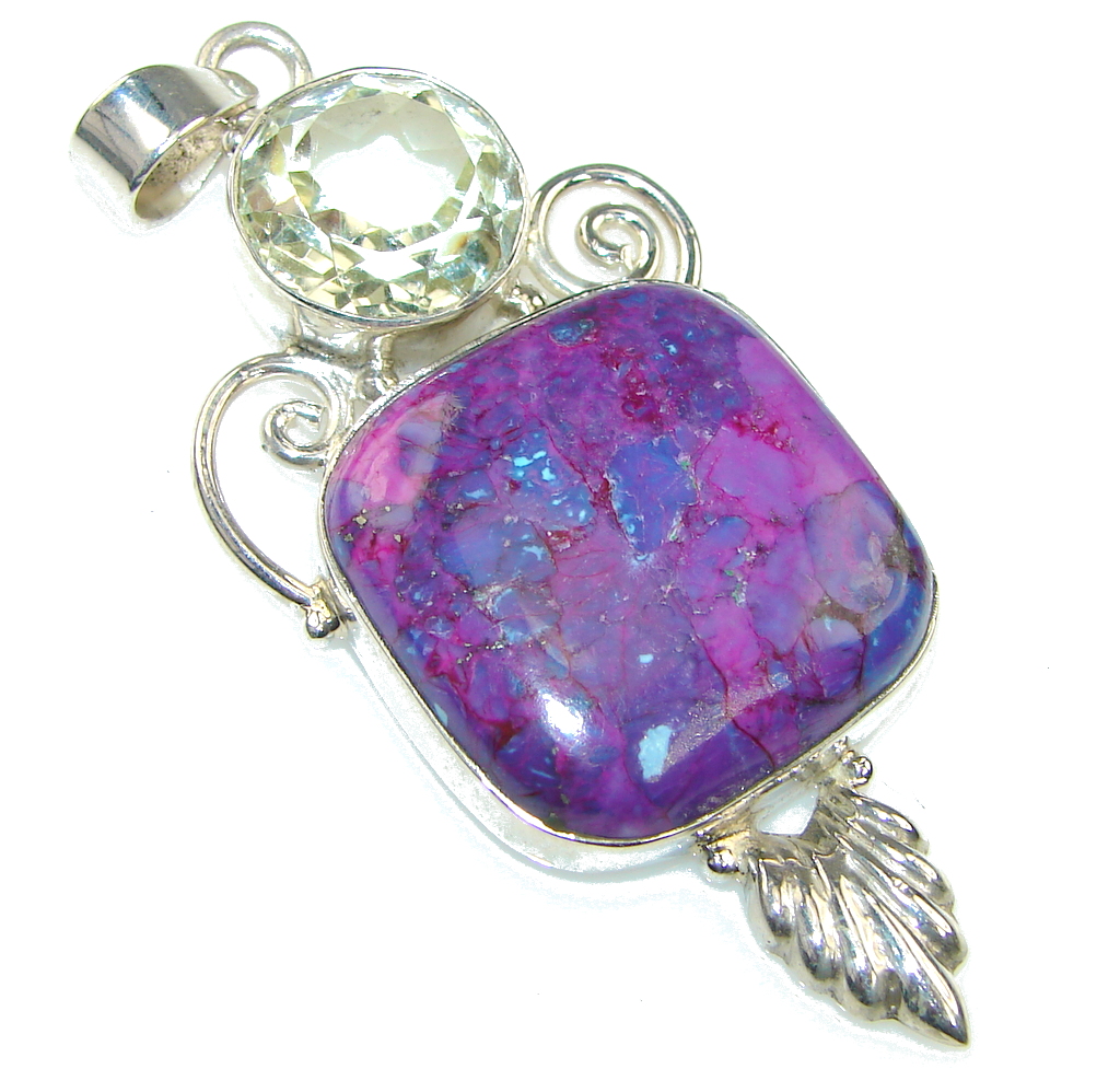 Excellent Purple Turquoise, Citrine Sterling Silver Pendant