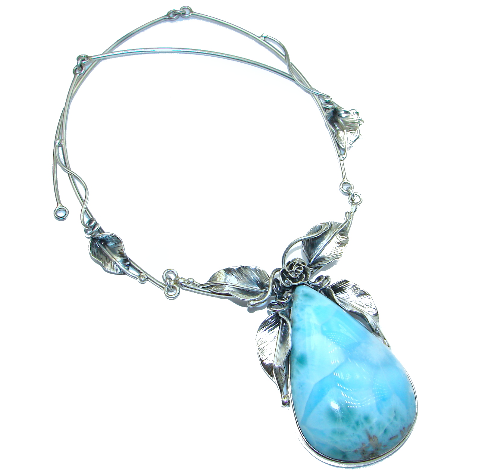 Huge Great Masterpiece genuine 195 ct Larimar .925 Sterling Silver handmade necklace