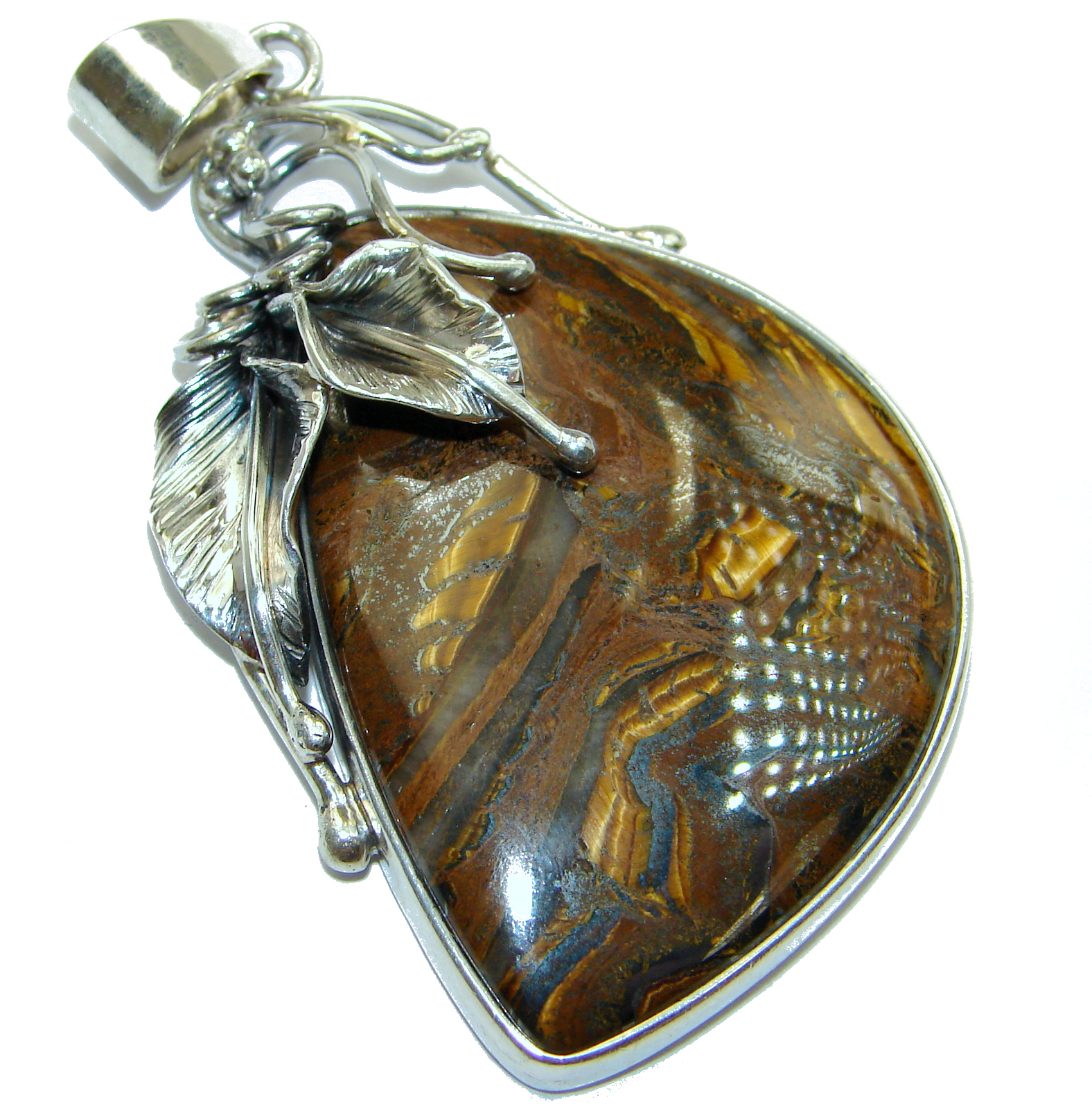 Incredible quality Silky Golden Tigers Eye .925 Sterling Silver handmade Pendant