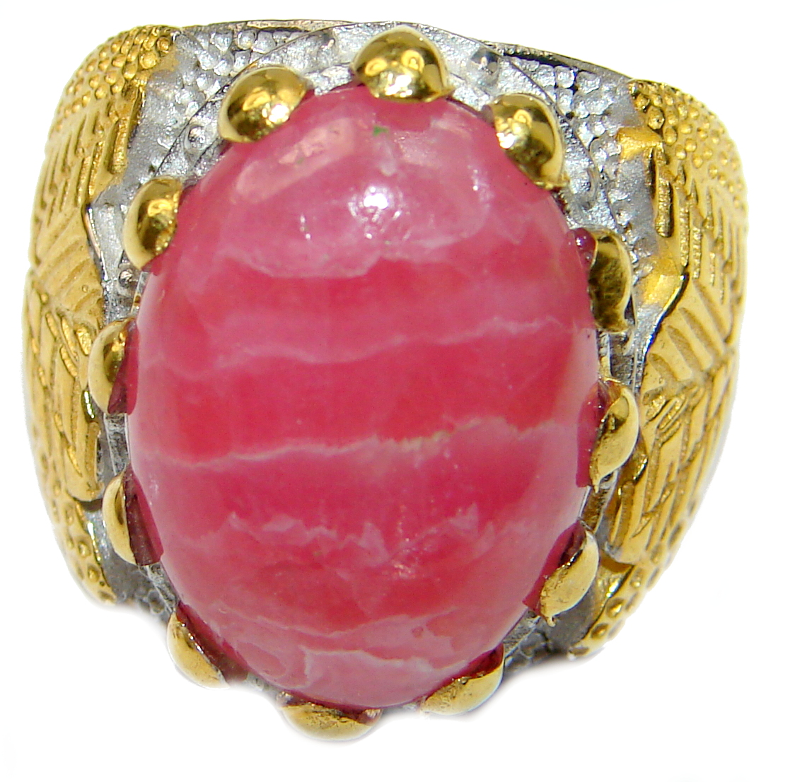 Argentinian Rhodochrosite 14K Gold over .925 Sterling Silver handmade ring size 7 1/4