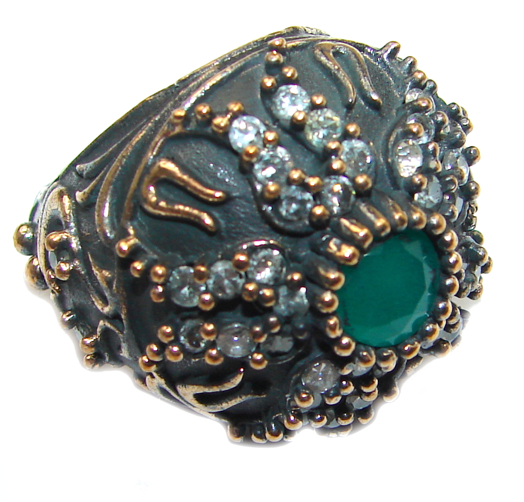 Victorian Style created Emerald & White Topaz Sterling Silver Ring s. 6