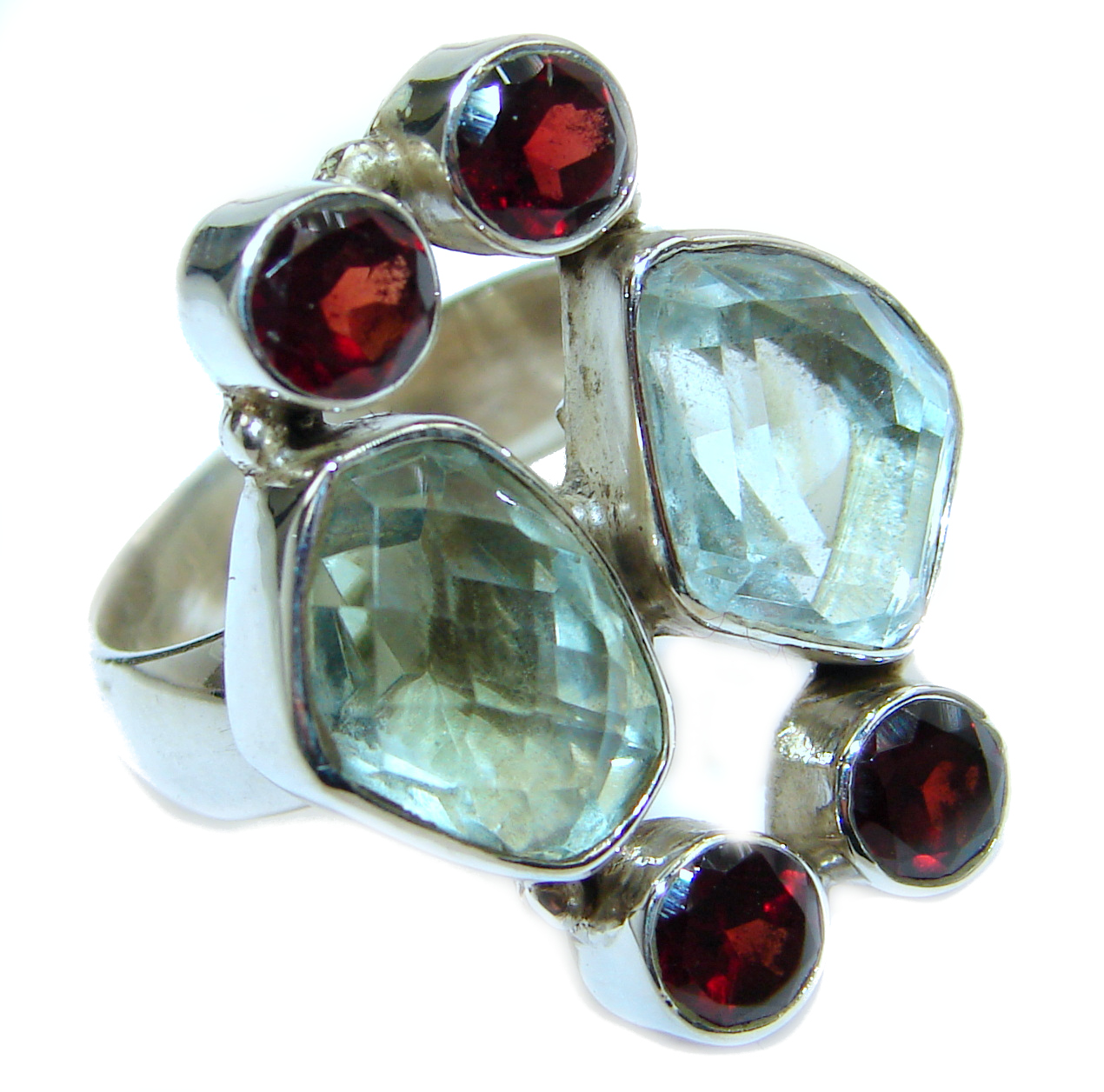Genuine Garnet .925 Sterling Silver handmade Ring s. 7 adjustable