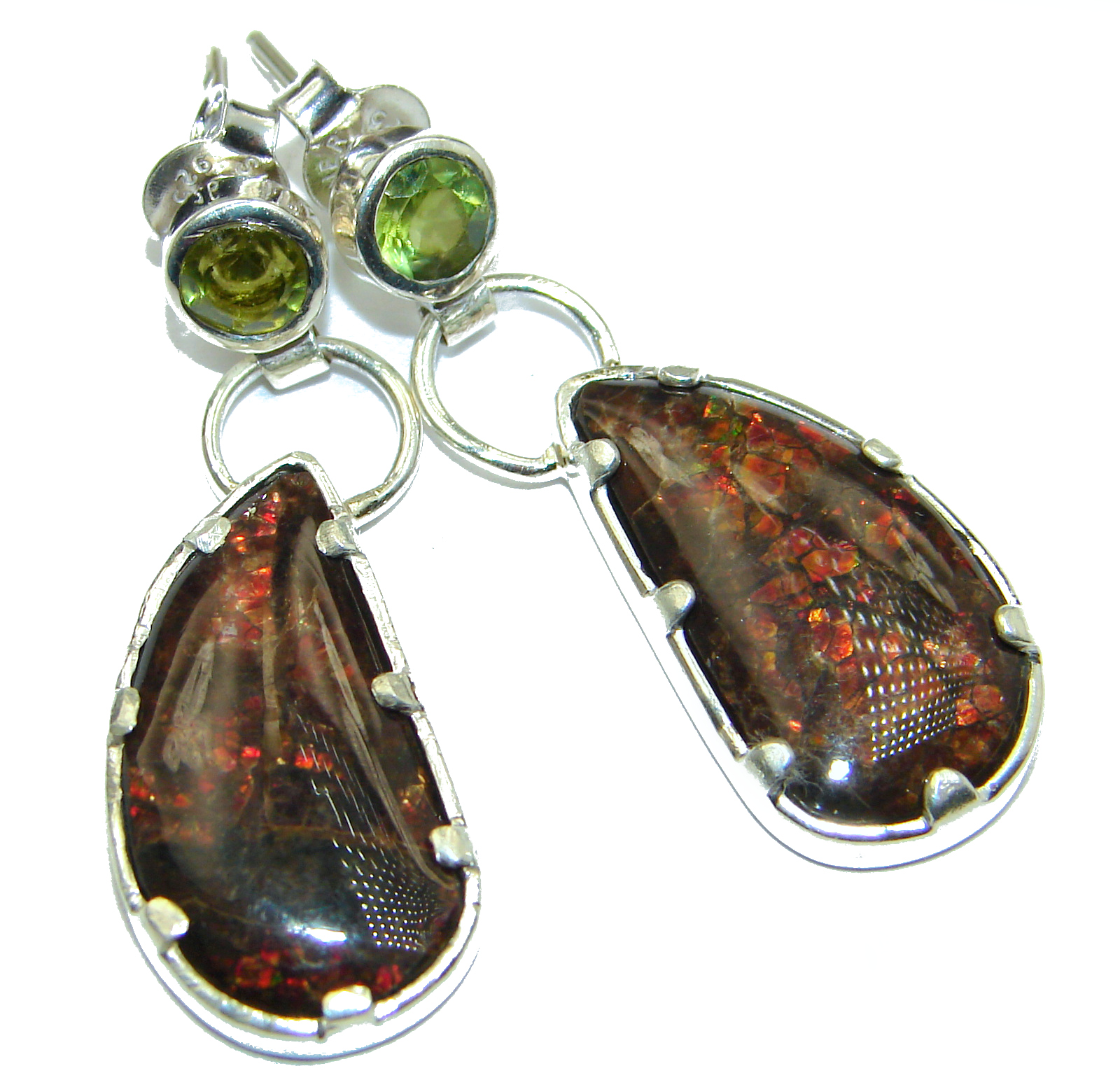 Green Aura AAA + Fire Ammolite .925 Sterling Silver handcrafted earrings