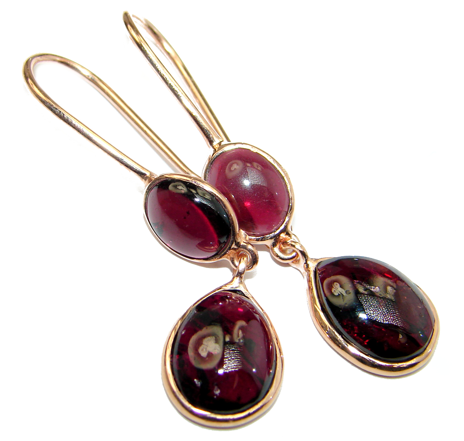 Authentic genuine Garnet 18k Gold over .925 Sterling Silver handmade earrings