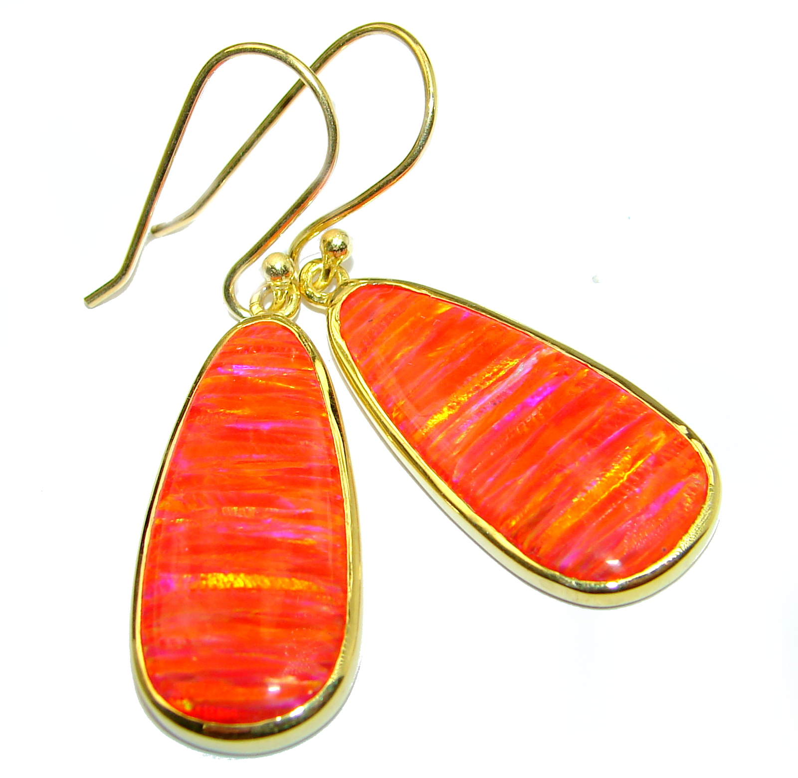 Genuine Fire Labradorite 18K Gold over .925 Sterling Silver handcrafted Earrings