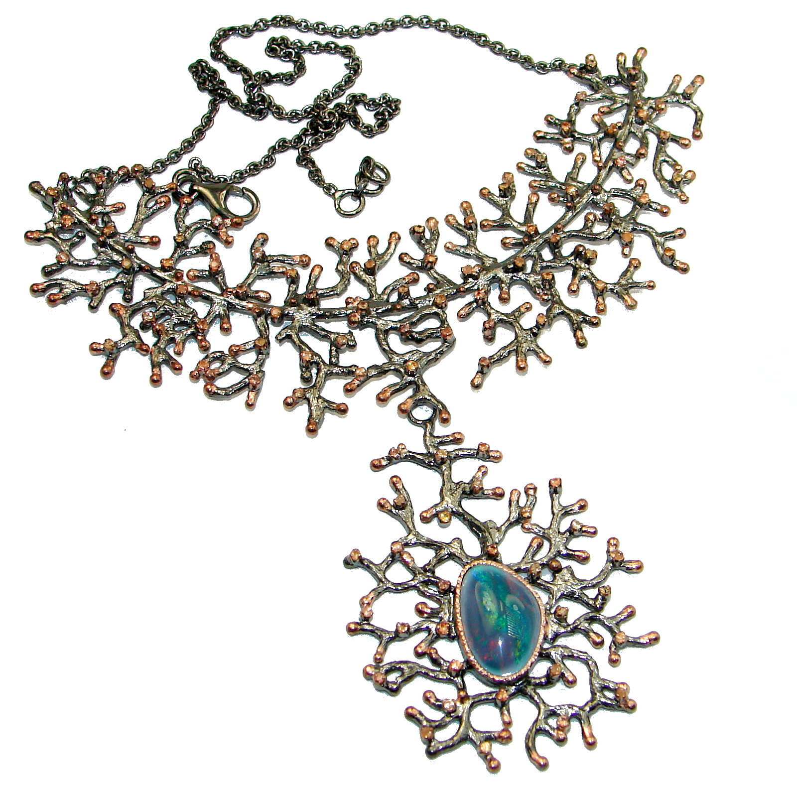 Spectacular Rustic Style Australian Doublet Opal .925 Sterling Silver brilliantly handcrafted necklace