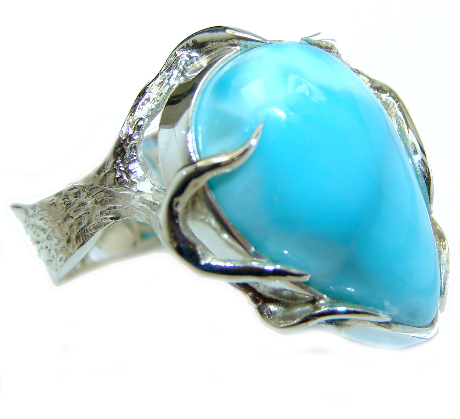 Natural Larimar .925 Sterling Silver handcrafted Ring s. 8 1/2