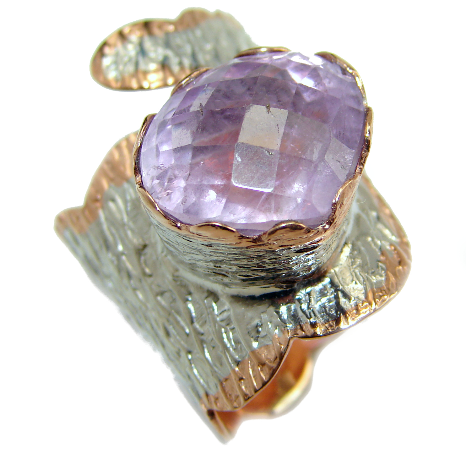 Large Pink Amethyst .925 Sterling Silver handmade ring size 6 adjustable
