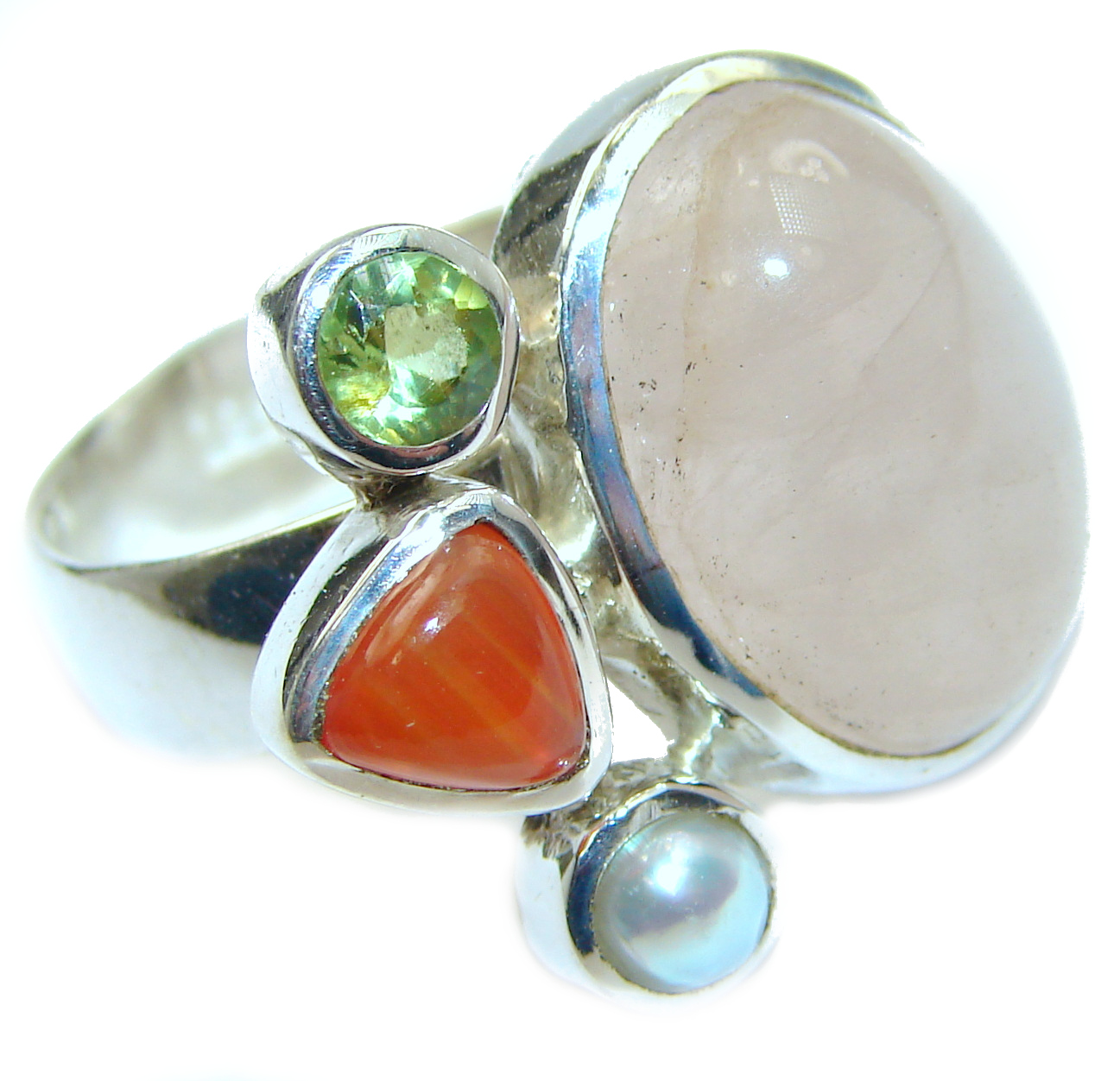 Best Quality Rose Quartz .925 Sterling Silver ring s. 7 adjustable