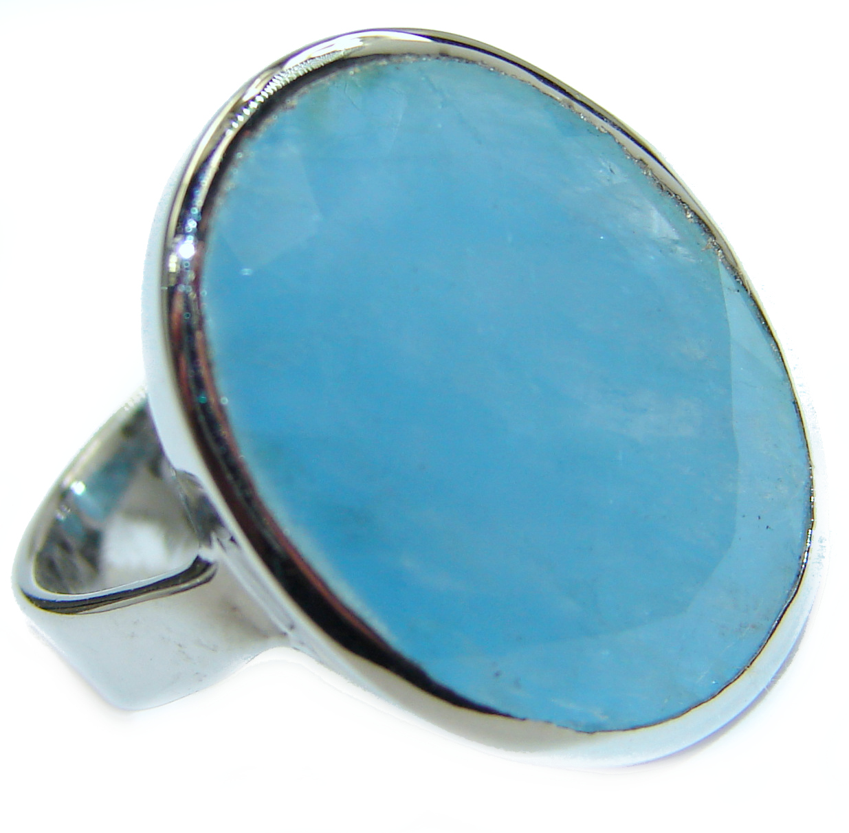 Fancy genuine Aqumarine .925 Sterling Silver handcrafted ring s. 6 1/4