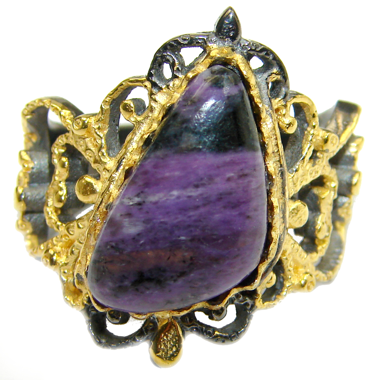 Natural Siberian Charoite Gold over .925 Sterling Silver handcrafted ring size 6 1/4