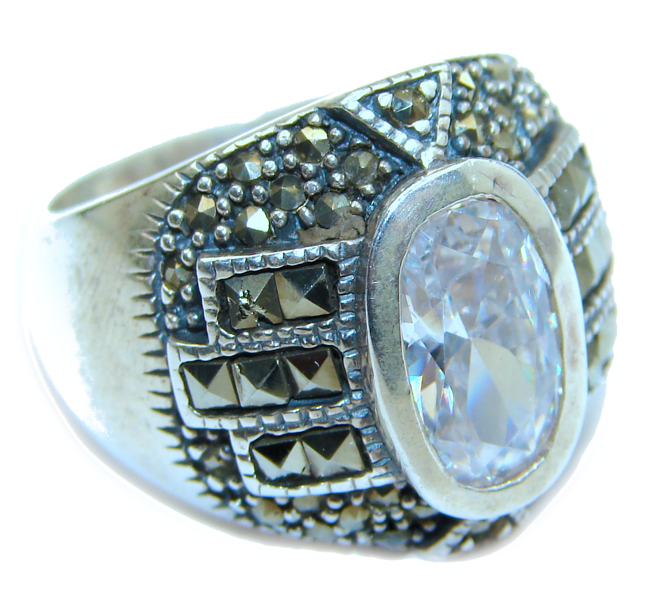 Ultra Fancy Cubic Zirconia .925 Sterling Silver Cocktail ring s. 7