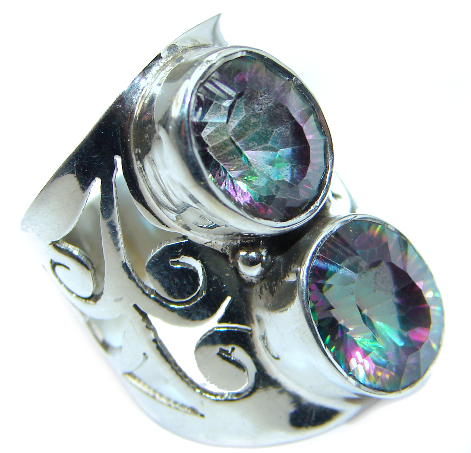 Huge Exotic Magic Topaz .925 Sterling Silver handcrafted Ring s. 7