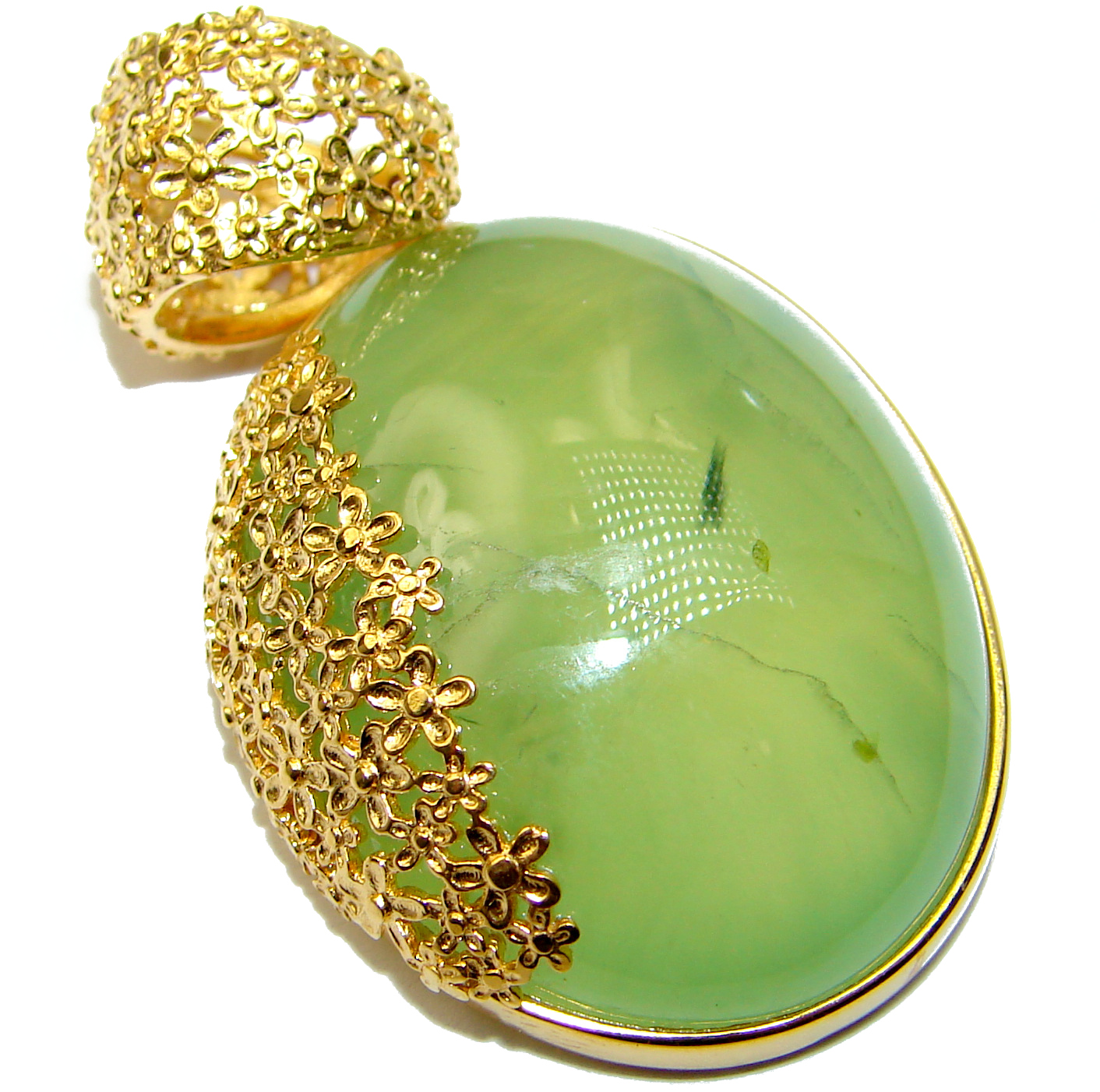 Authentic Moss Prehnite 18K Gold over .925 Sterling Silver handmade pendant