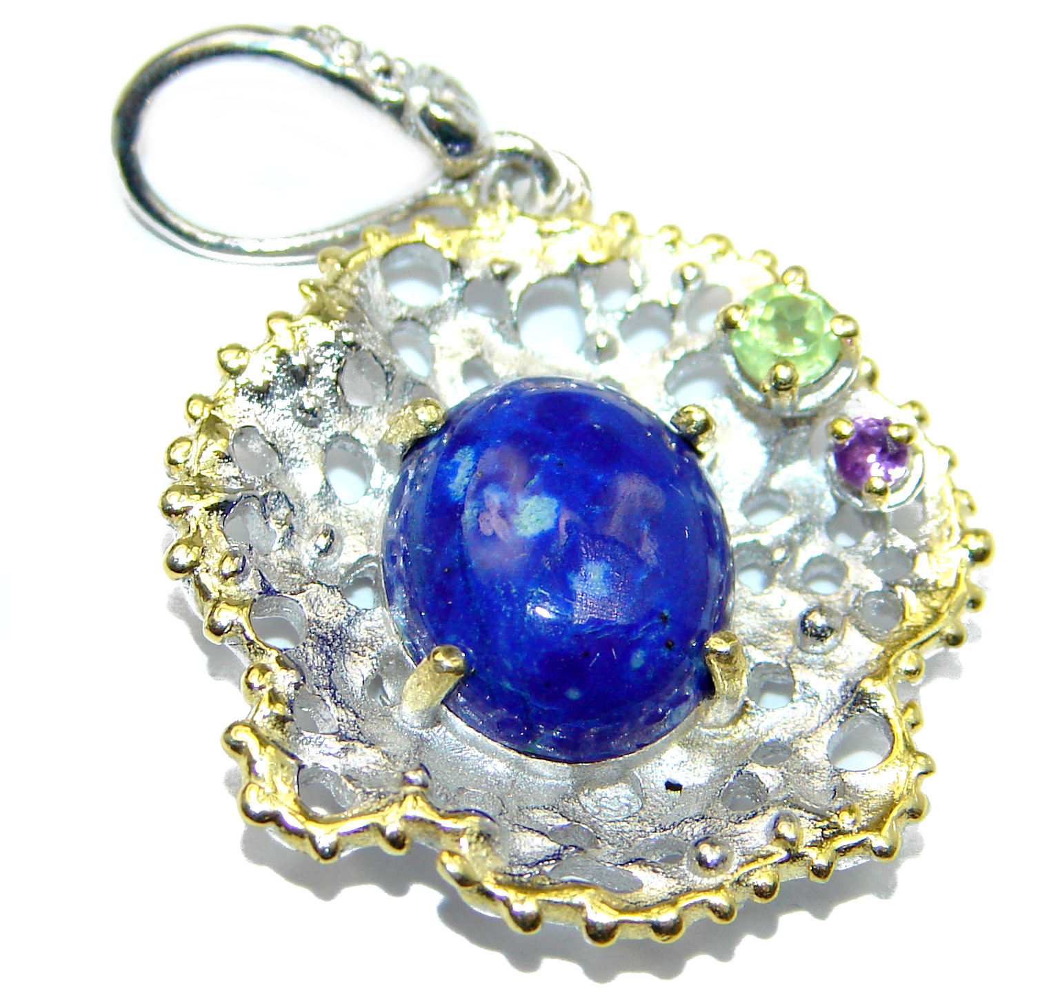 Perfect Lapis Lazuli 14K Gold over .925 Sterling Silver handcrafted Pendant