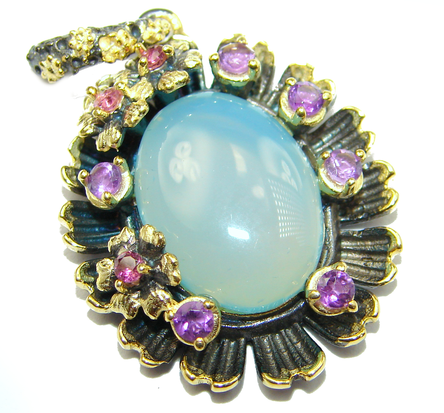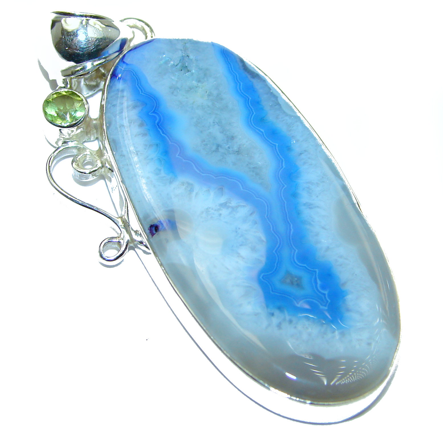 Blue Aura Chalcedony Agate .925 Sterling Silver handmade Pendant