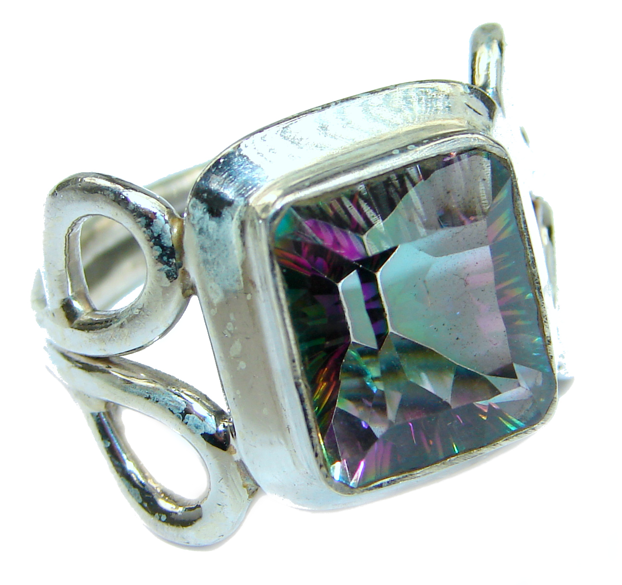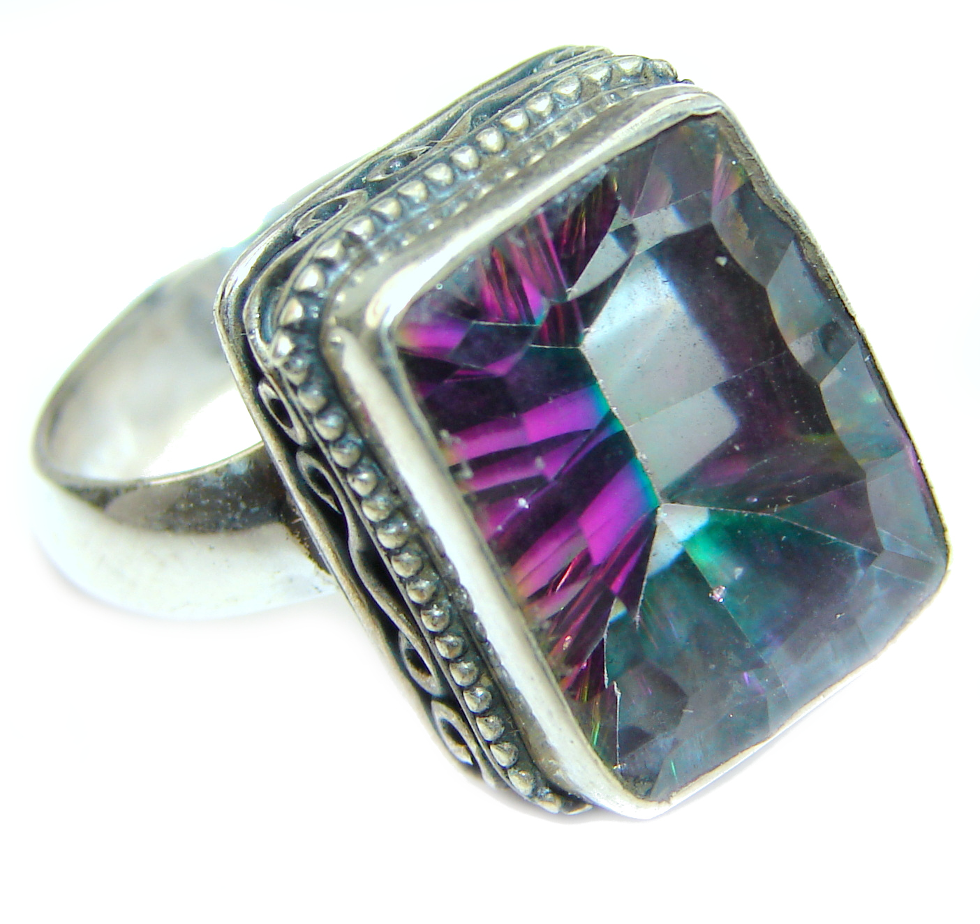 Huge Exotic Magic Topaz .925 Sterling Silver handcrafted Ring s. 8