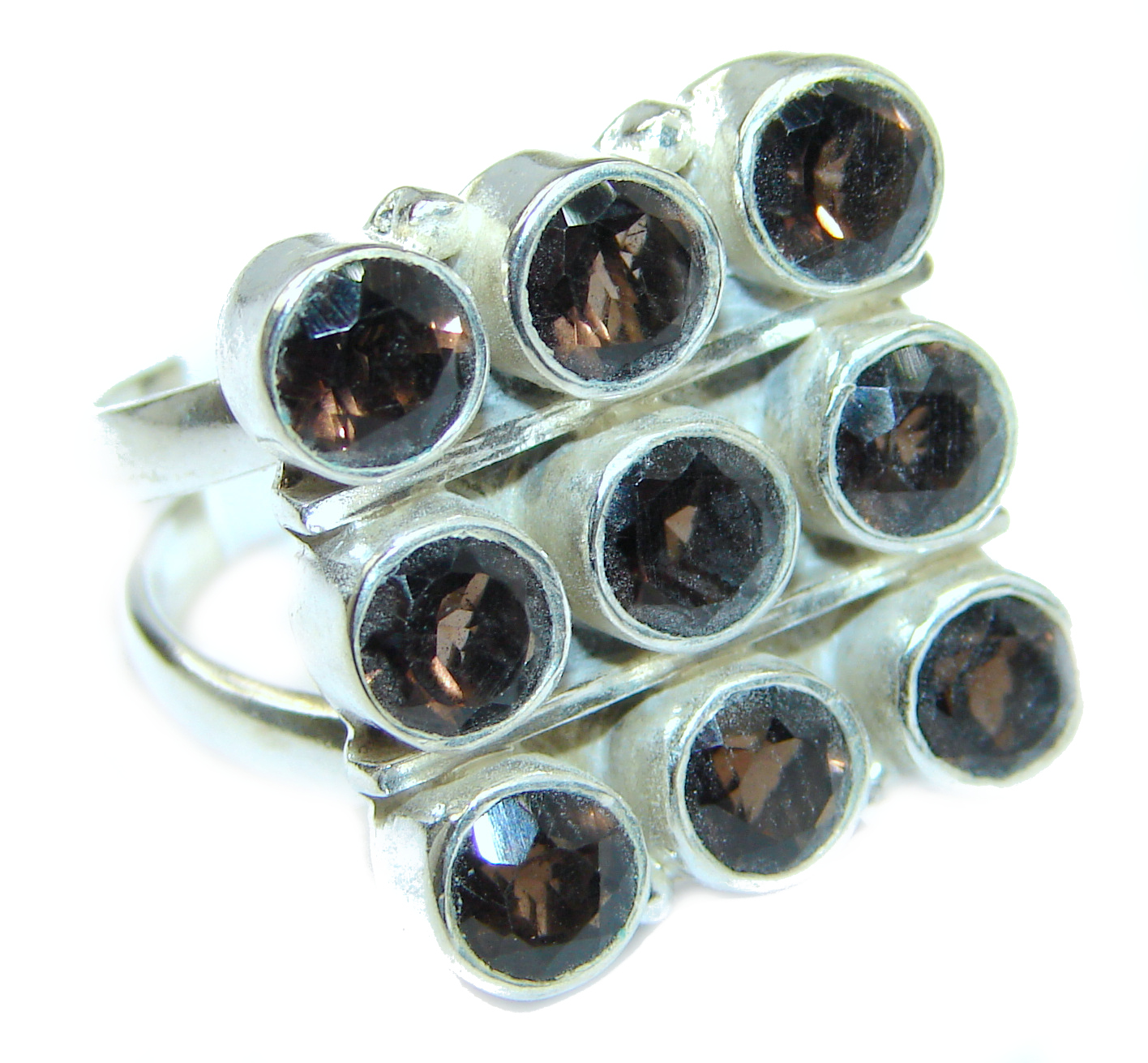 Bold Champagne Smoky Topaz .925 Sterling Silver Ring size 8
