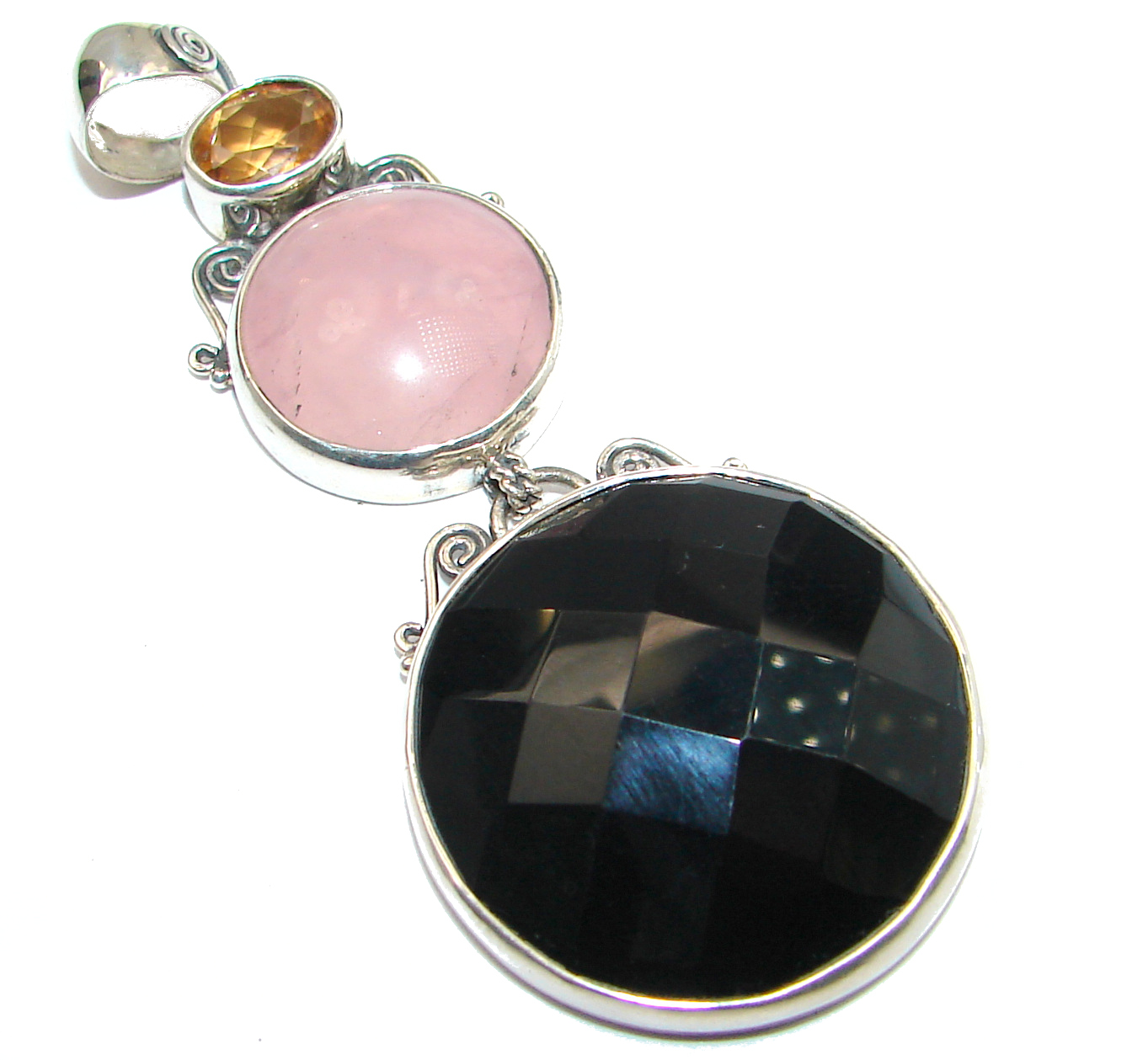 Huge Perfect quality Black Onyx .925 Sterling Silver Handmade Pendant