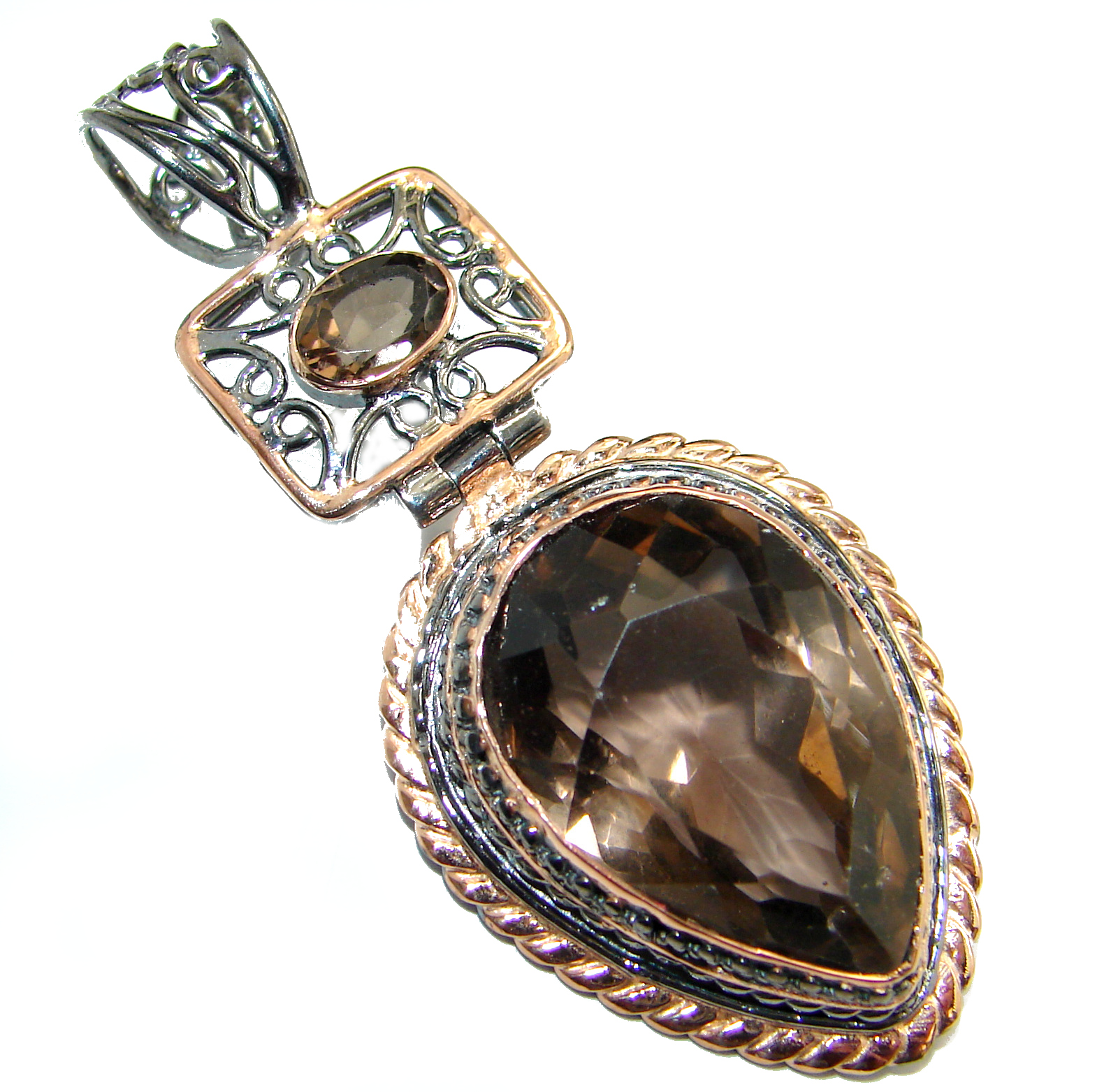 Vintage Design Beauty Smoky Topaz .925 Sterling Silver handmade Pendant