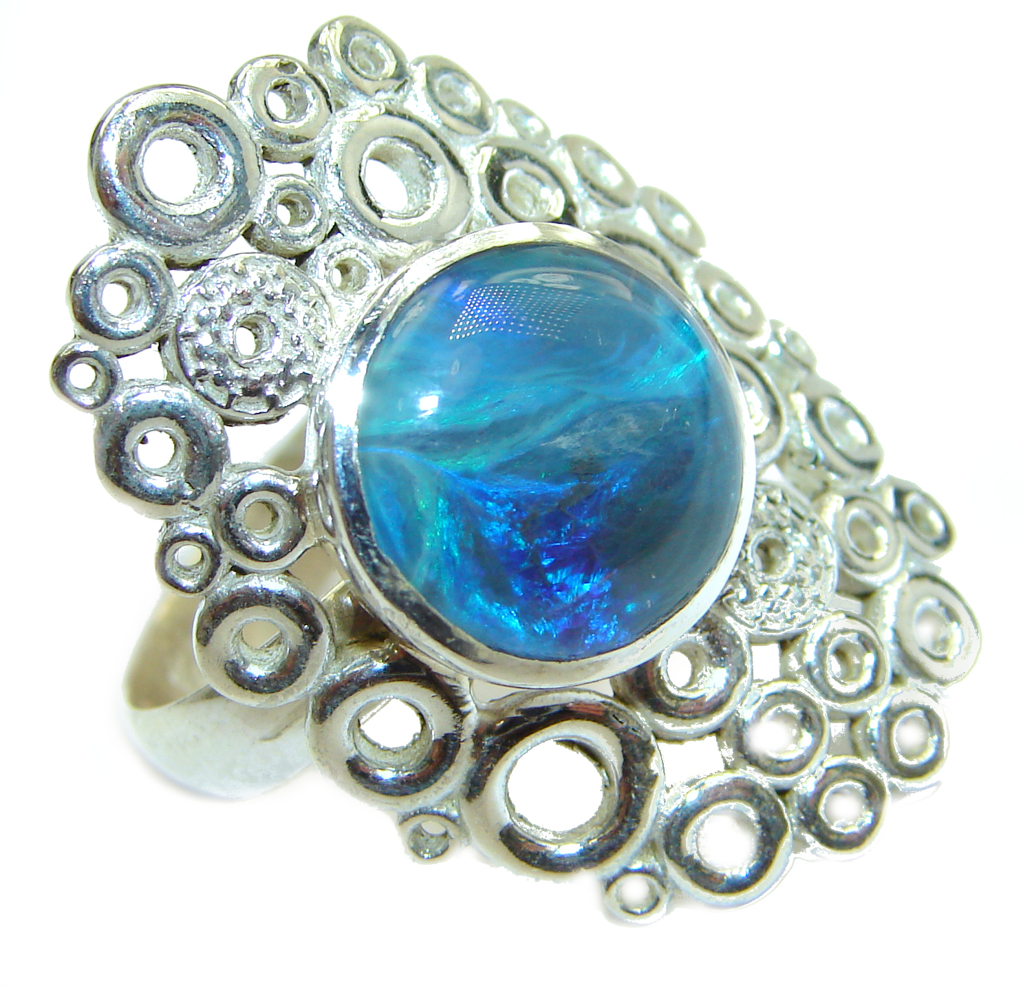 Doublet Opal .925 Sterling Silver handmade Cocktail Ring s. 7 adjustable