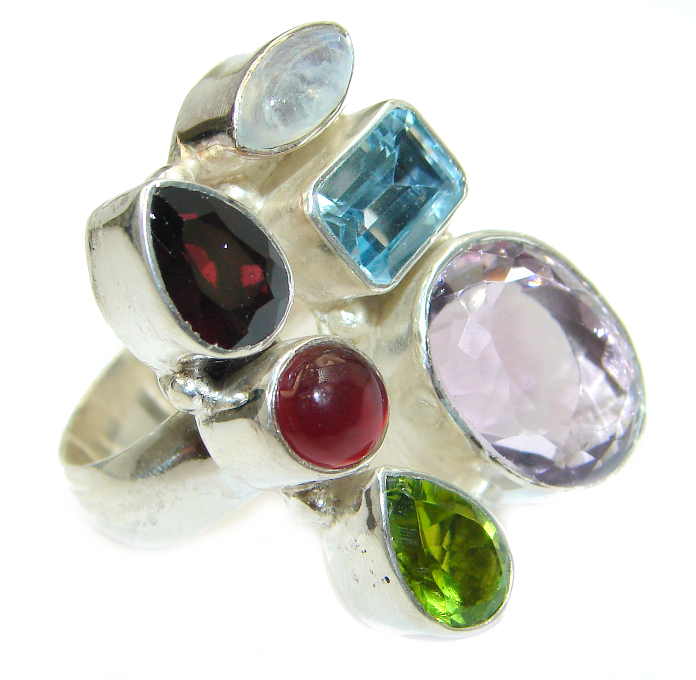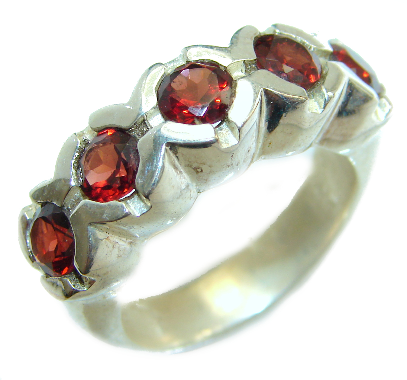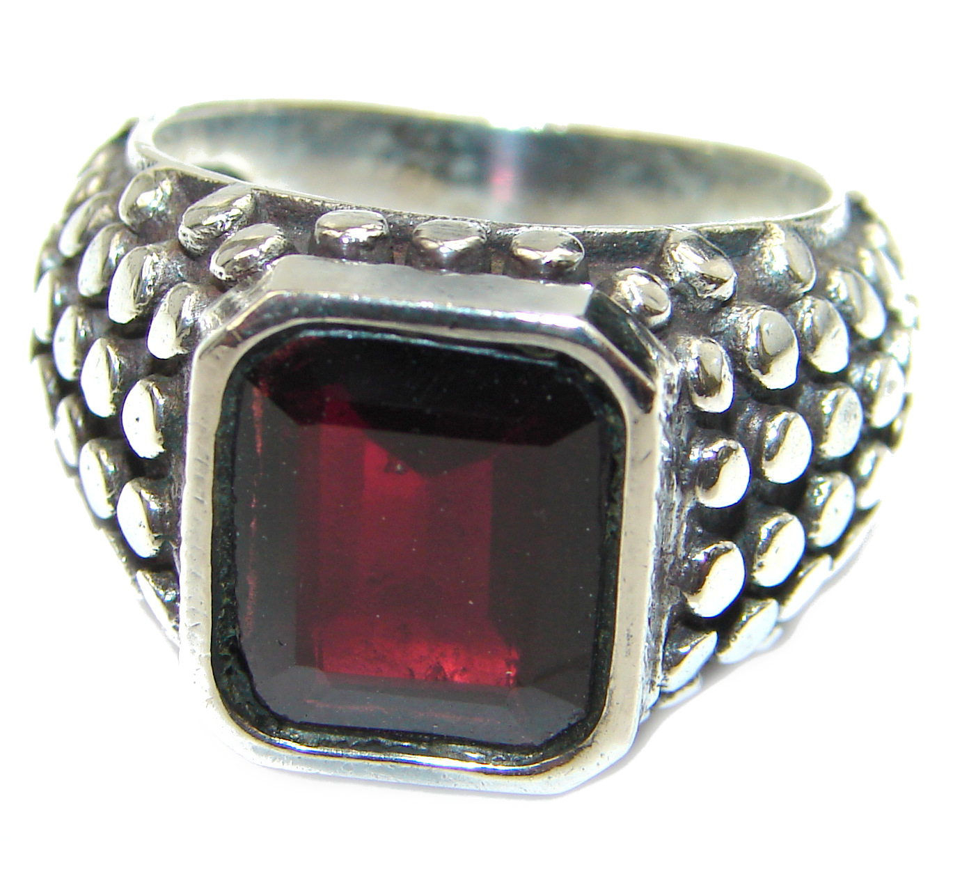 Genuine Garnet .925 Sterling Silver handmade Cocktail Ring s. 8