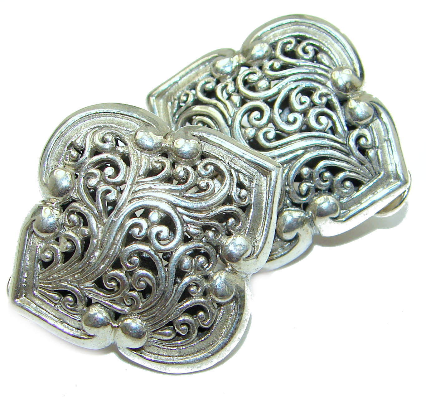 Huge 1.25 inches wide Bali Treasure .925 Sterling Silver handmade earrings