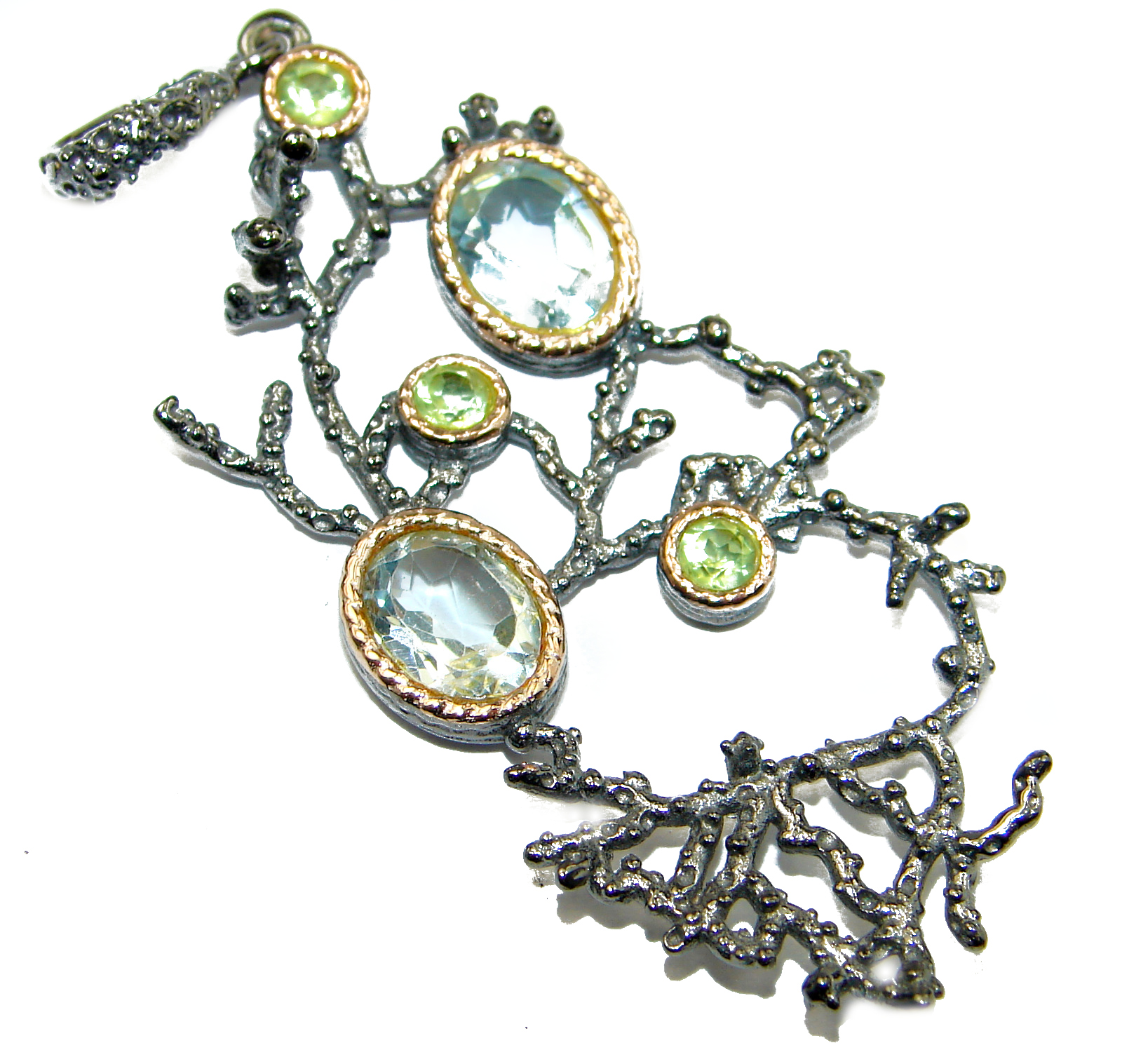Byzanitine Style Authentic Swiss Blue Topaz .925 Sterling Silver handmade Pendant