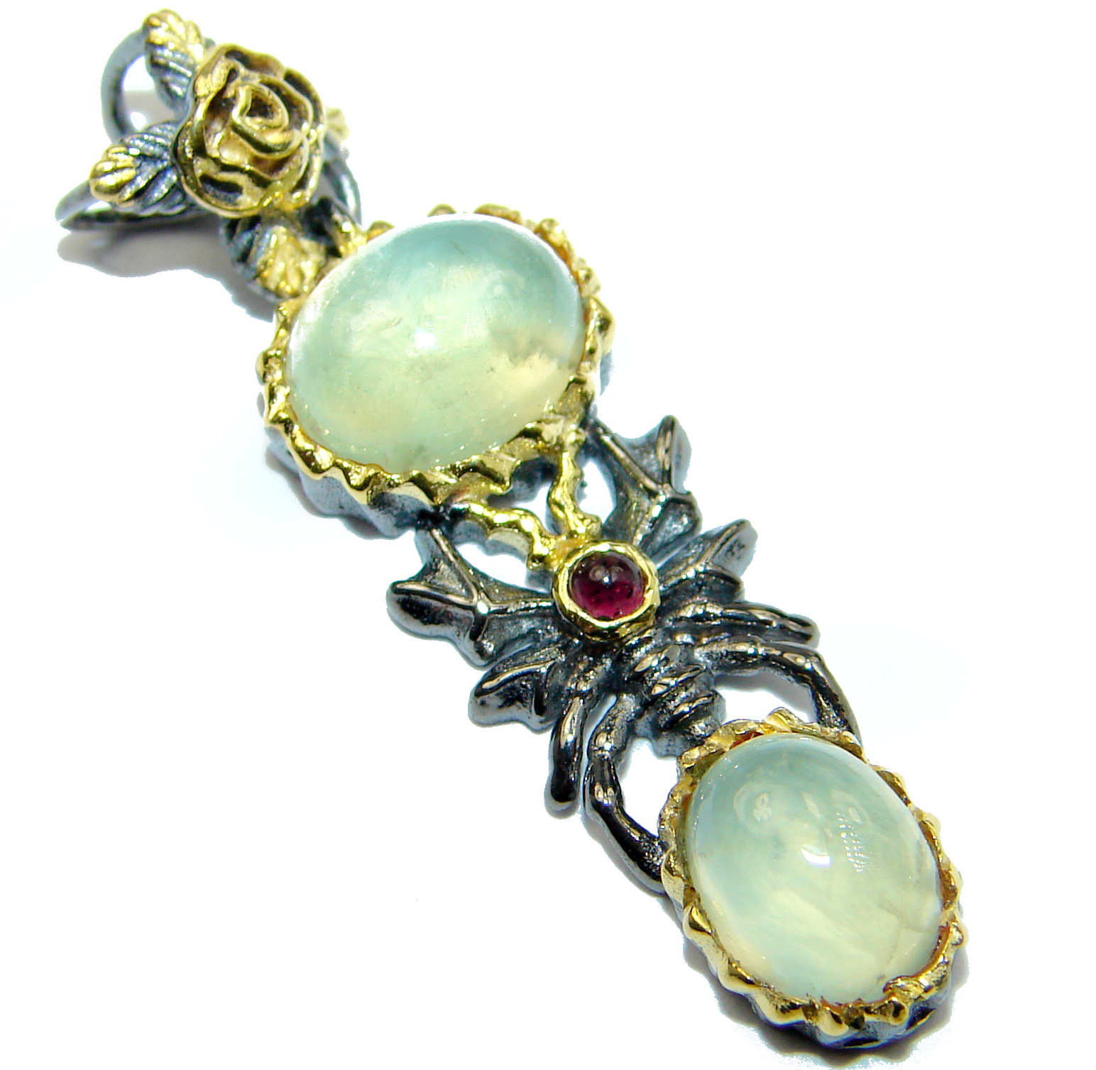 Authentic Moss Prehnite .925 Sterling Silver handmade pendant