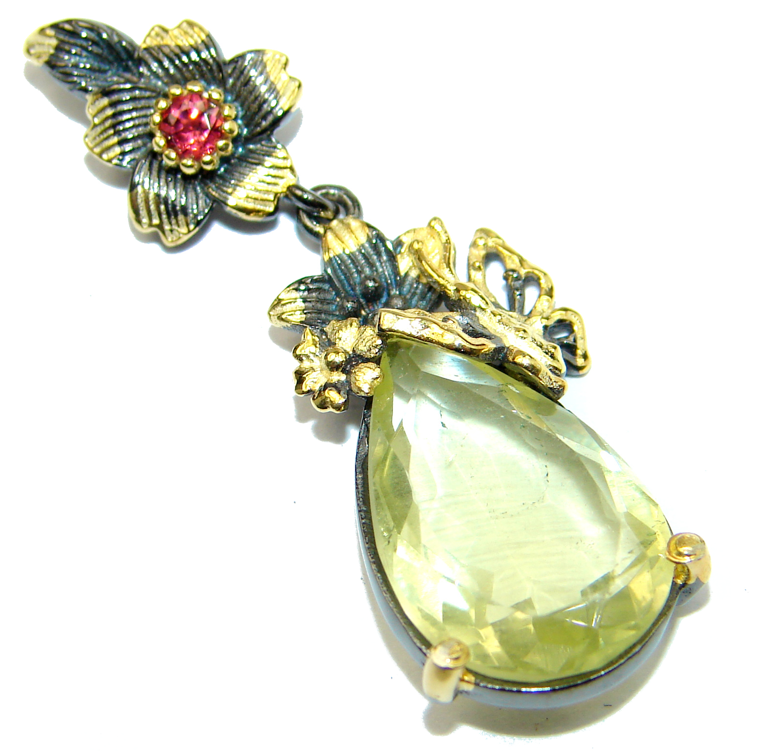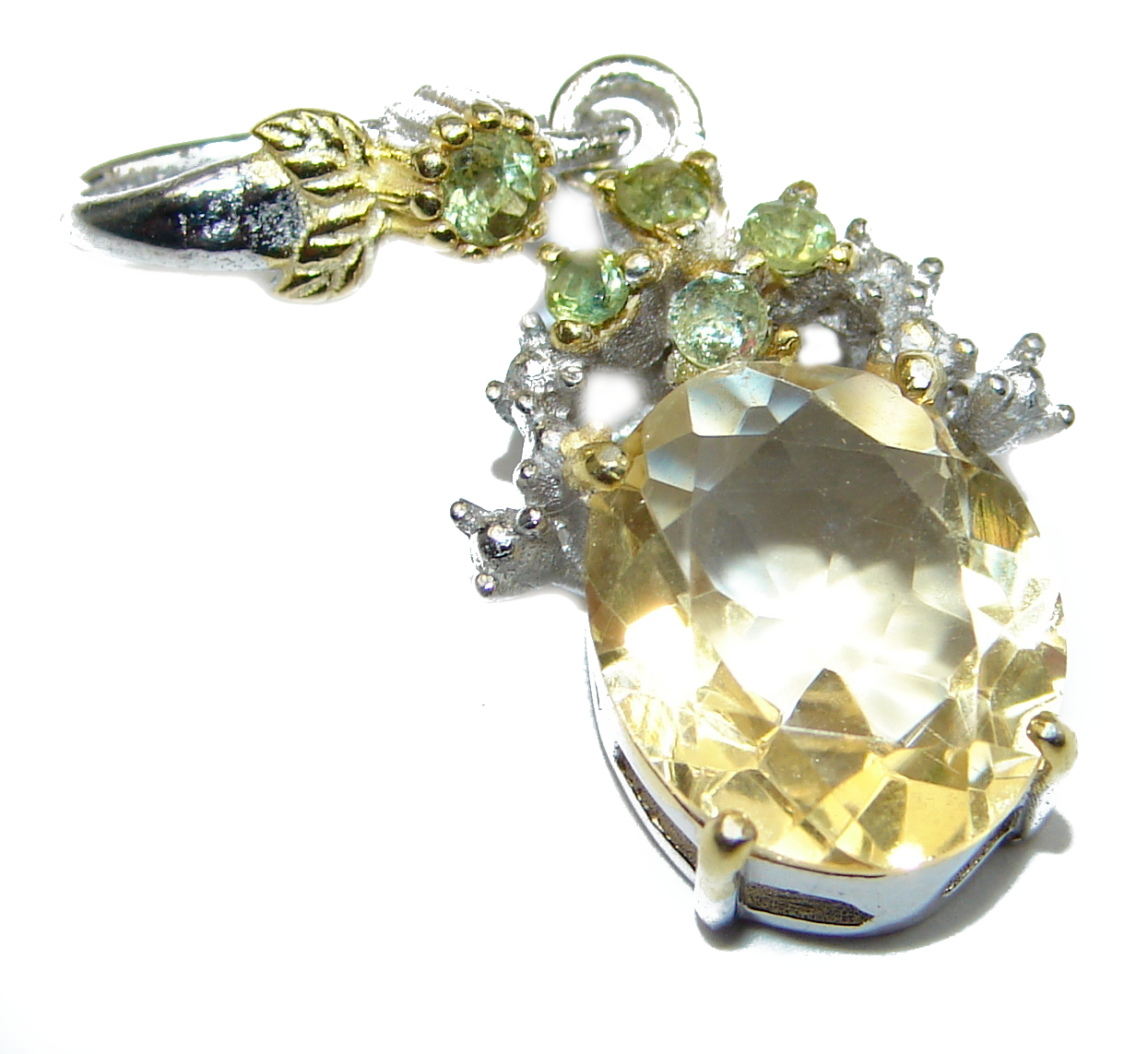 Genuine Citrine 14K Gold .925 Sterling Silver handmade Pendant