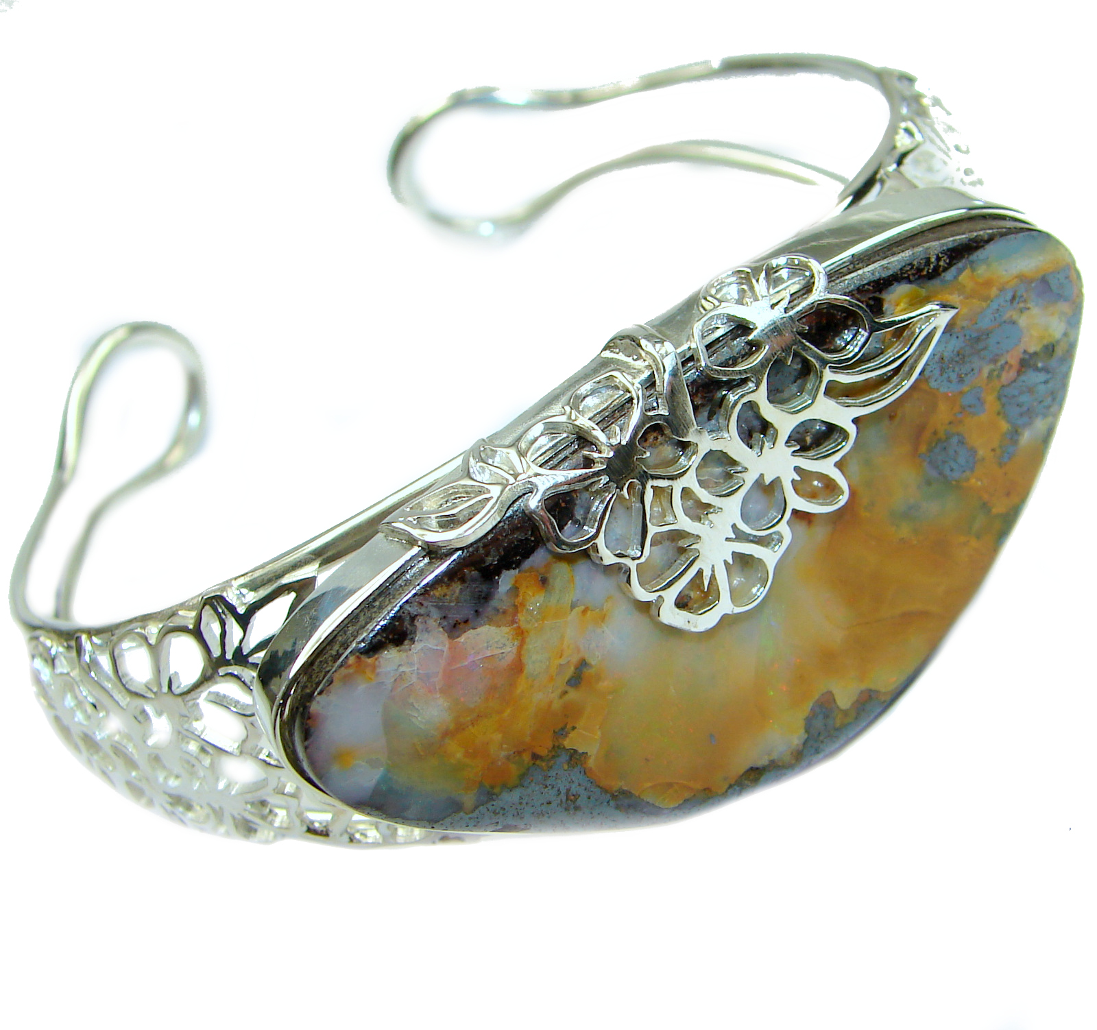 Norwegian Northern Lights Boulder Opal handmade .925 Sterling Silver Bracelet / Cuff