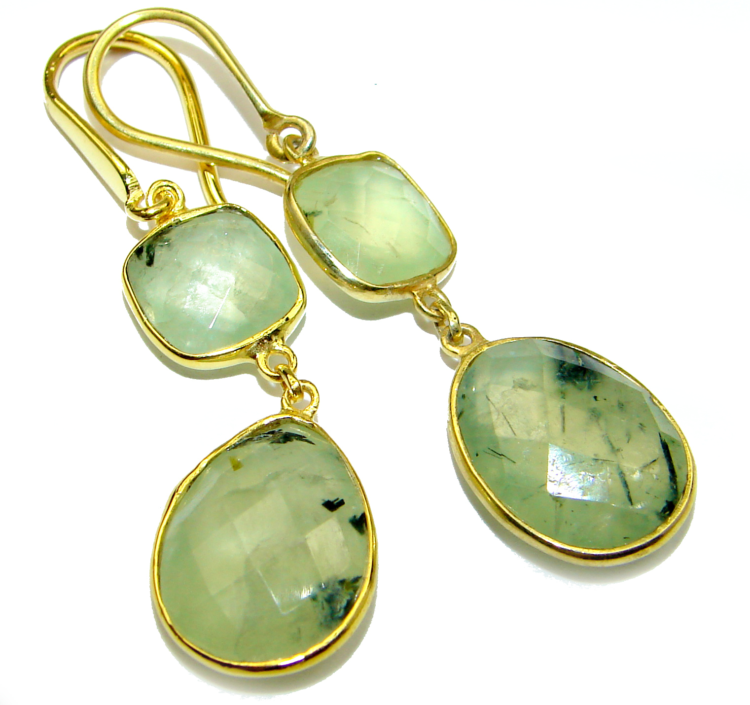 Authentic Moss Prehnite Gold over .925 Sterling Silver handmade earrings