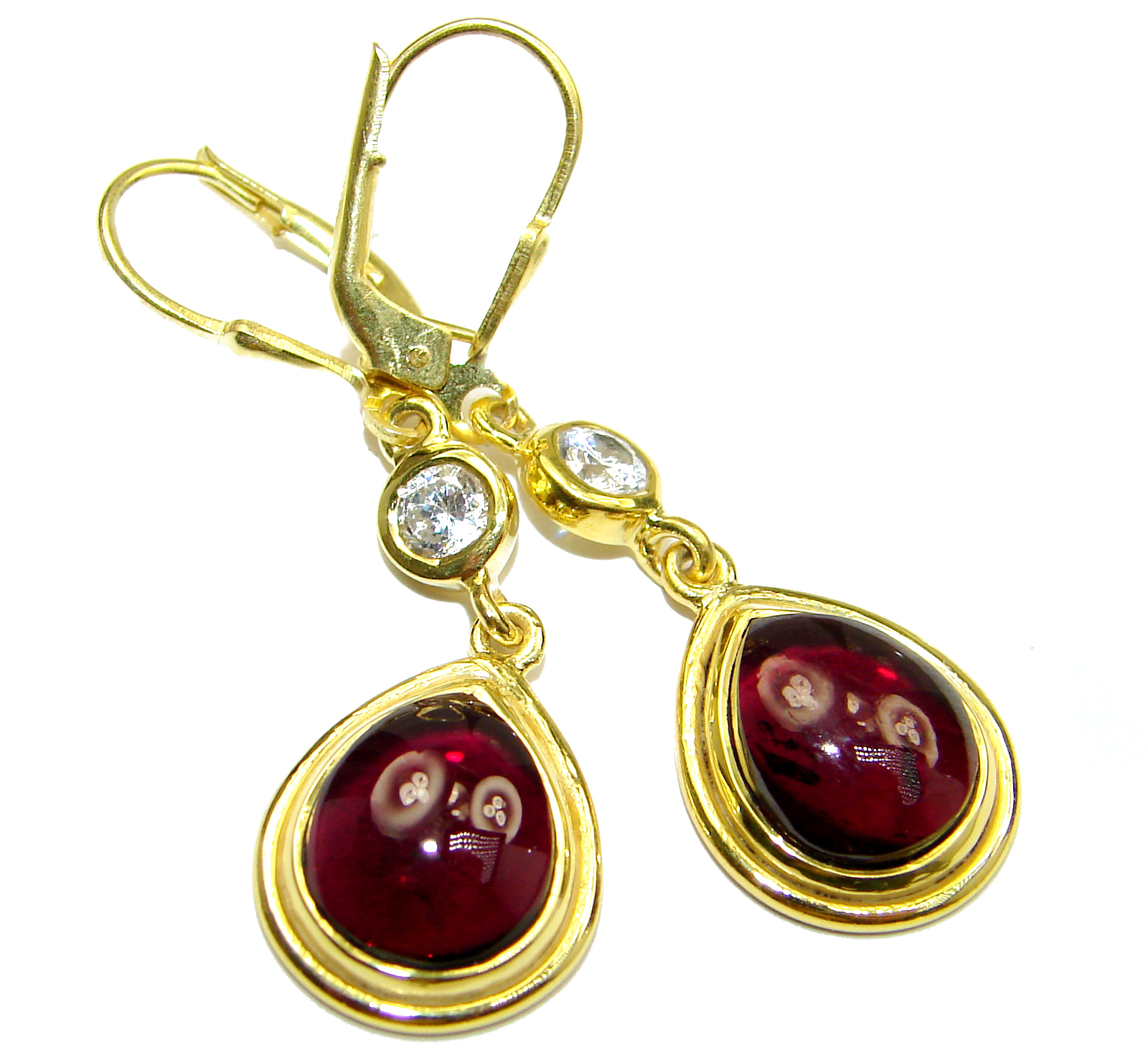 Authentic Garnet 14K Gold .925 Sterling Silver handmade earrings
