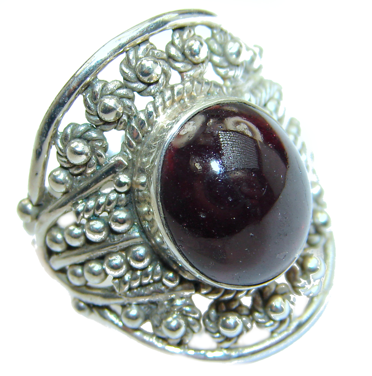 Genuine Garnet .925 Sterling Silver handmade Cocktail Ring s. 8