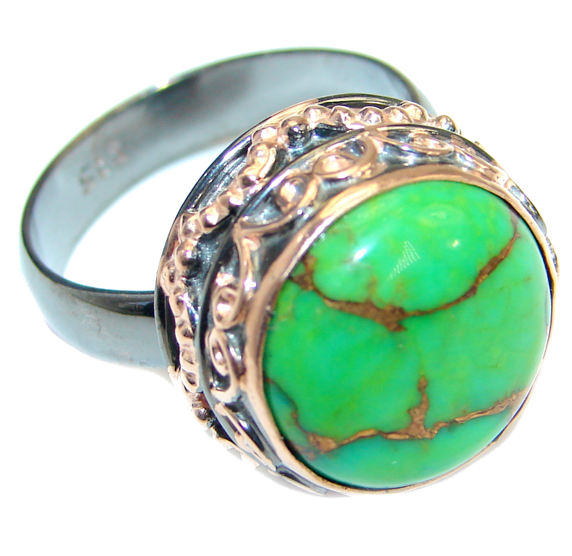 Copper Green Turquoise .925 Sterling Silver handmade Ring s. 7 adjustable