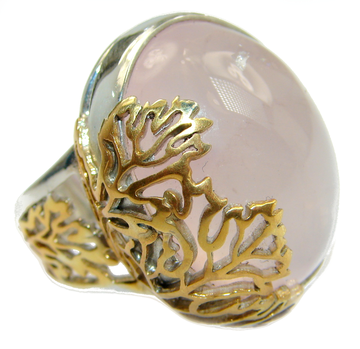 Best Quality Rose Quartz 14K Golod over .925 Sterling Silver ring s. 7 adjustable