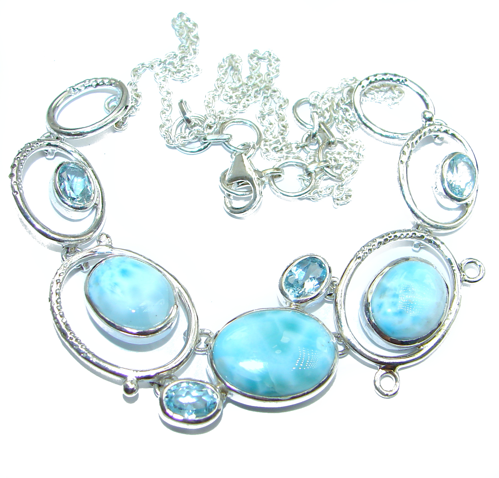 One of the kind Nature inspired Larimar Gold Rhodium over .925 Sterling Silver handmade necklace