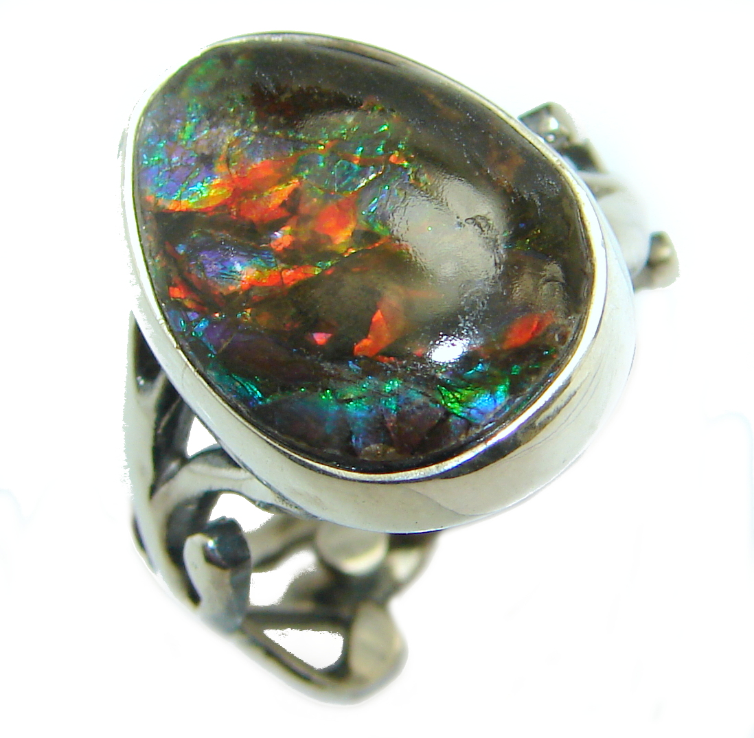 Pure Energy Genuine Canadian Ammolite .925 Sterling Silver handmade ring size 7 adjustable