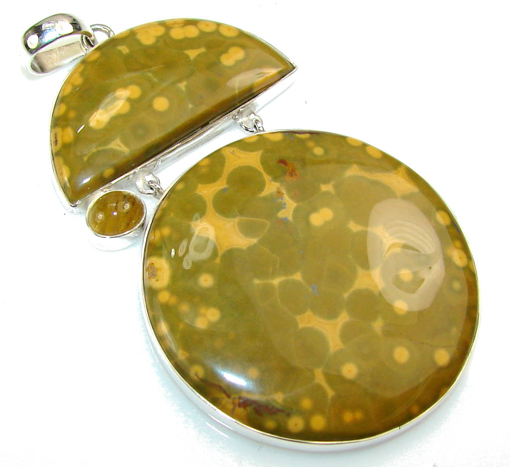 Big! New!! Leopard Skin Jasper Sterling Silver Pendant
